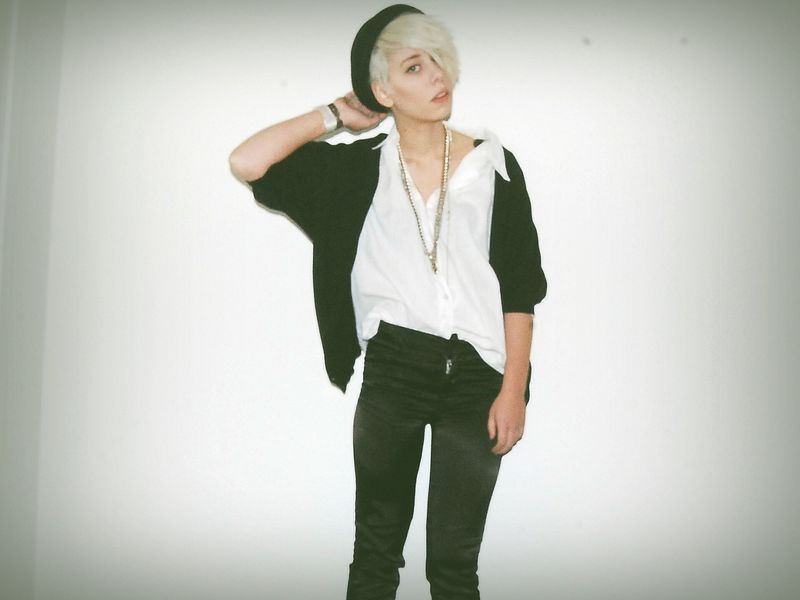 Ma, fino a che punto si può arrivare ad essere sexy con il pantalone alla garconne, senza finire per essere confusi per un maschietto magro che sculetta un po’ troppo? Non me ne voglia Alessandra, ma io veramente all’inizio non sono riuscita a capire. Forse mi hanno ingannato i capelli corti tirati indietro o gli occhiali tondi alla John Lennon, fatto sta che un momentino ci ho dovuto pensare. E non perché tale abbinamento o stile non mi piaccia, anzi.