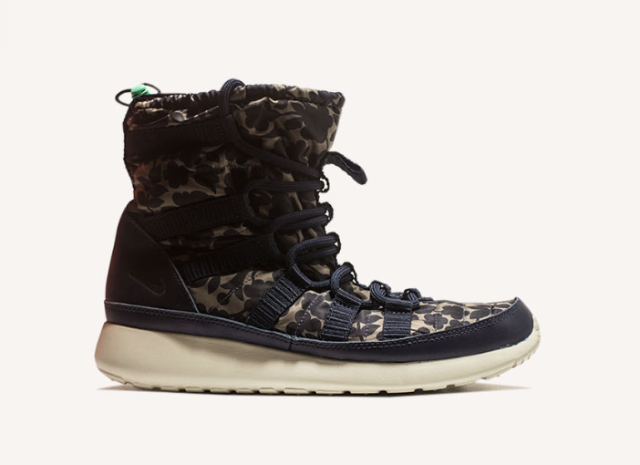 L’uscita di oggi ha come protagonista questo motivo floreale astratto stampato su altri tre modelli del marchio - l’iconica Air Force 1, la pratica Roshe One Hi-Top e l' innovativa Lunaracer SFB - nella versione Obsidian Blue.