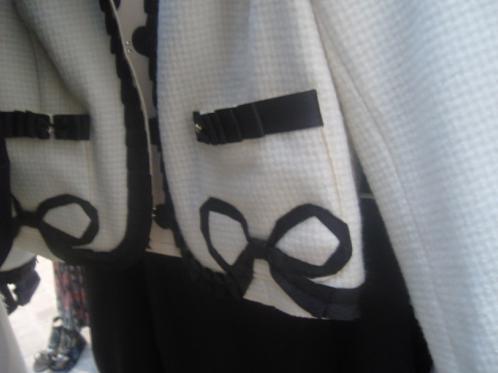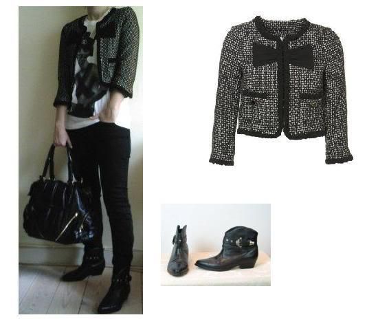 La giacca in questione fa parte del famigerato tailleur di Chanel, lanciato sul mercato a cavallo tra gli anni 20 e 30 del secolo scorso e che non è mai mancato nelle collezioni della maison francese, che si è sempre prodigata per farlo diventare un classico segno di riconoscimento. Ad oggi separata dalla sua gonna, è stata mixata più e più volte in diversi outfits, dando un tocco retrò al look scelto. Definirei fortunate quelle che fra voi ne posseggono una original vintage, agguerrite quelle che ne hanno una delle nuove collezioni, originali chi è ricorsa alla personalizzazione della mitica giacca modello cardigan, che fa subito chanel allure! Declinata nelle tinte classiche del beige, grigio e blu navy, deve il suo successo alla forma corta e squadrata, resa morbida dai tessuti utilizzati da sempre, quali il gabardine, il cheviot, la vigogna ed il tweed. I tratti irrinunciabili, che si ripetono in ogni rivisitazione, sono le tasche quadrate, i bottoni gioiello o profili a contrasto ed il frequente effetto matlasse. Se però non avete il privilegio di una giacca Chanel nell’armadio, se non siete soddisfatte delle proposte cheap dei vari H&M, Zara e Topshop se il banchetto vintage di fiducia è stato già saccheggiato, beh, acquistate una plain e rendetela vostra, con applicazioni evidenti, magari con borchie o lustrini vari, cambiate i bottoni e avrete sicuramente l’approvazione di Mademoiselle!