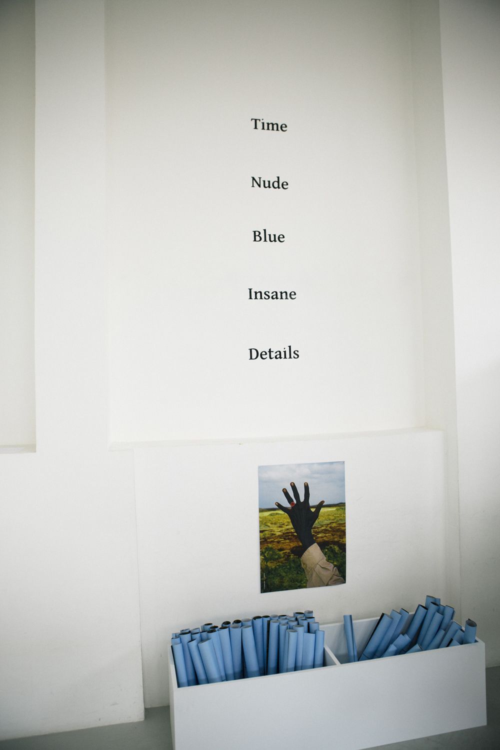 Presso una location dallo stile minimal, piccoli estratti di questa raccolta ornavano le mura bianche con colori vivaci e ombre che sembravano fuoriuscire dagli stessi scatti. Time, nude, blue, insane e details, parole che fungono da filo conduttore e da guida all'interno di questa nuova esperienza.