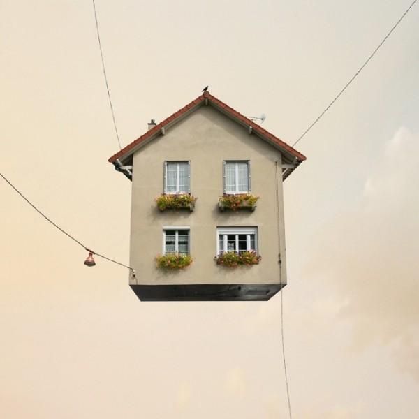 Flying house is the title of a series of images realized by the Parisian photographer Laurent Chehere.