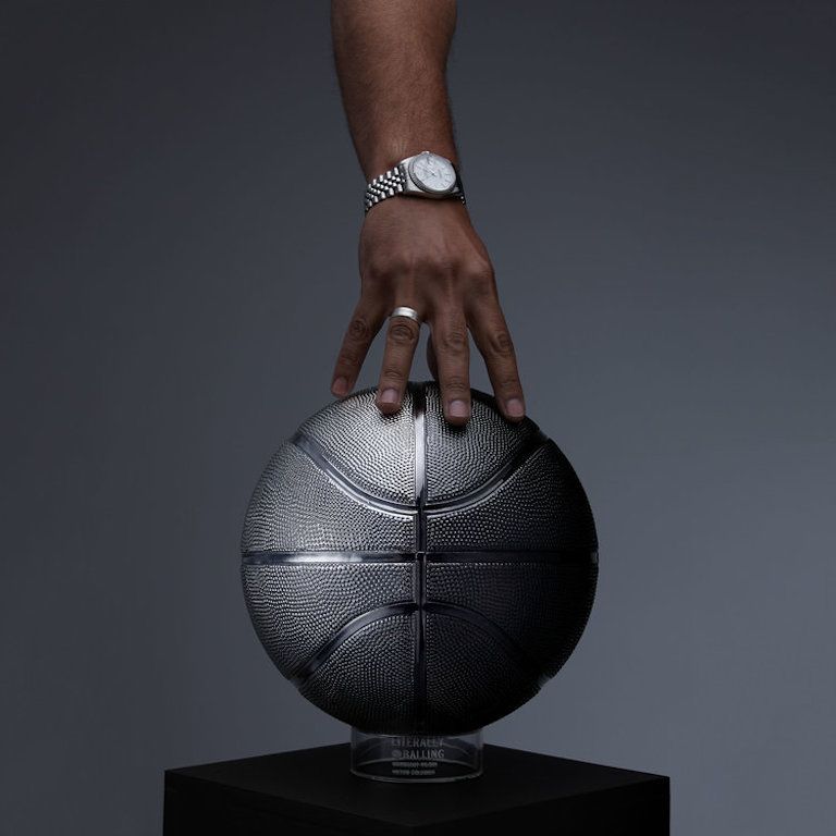Based in San Francisco, artist and filmmaker Victor Solomon attracted our attention with hood-meets-luxury art series of installations Literally Balling. Basketball never looked so expensive: every piece is made using Tiffany-style glass craftsmanship and it takes over 100 hours to make each. Pretty impressive for our fast-forward world! Real ballers can buy themselves MOONSHOT VS.001 - a limited edition urethane and rubber basketball embellished with a half-phase silver - or a super exclusive zine, embellished with laser-etched brass plates, set stones and gold leaf with portraits of Allen Iverson and Michael Jordan.
