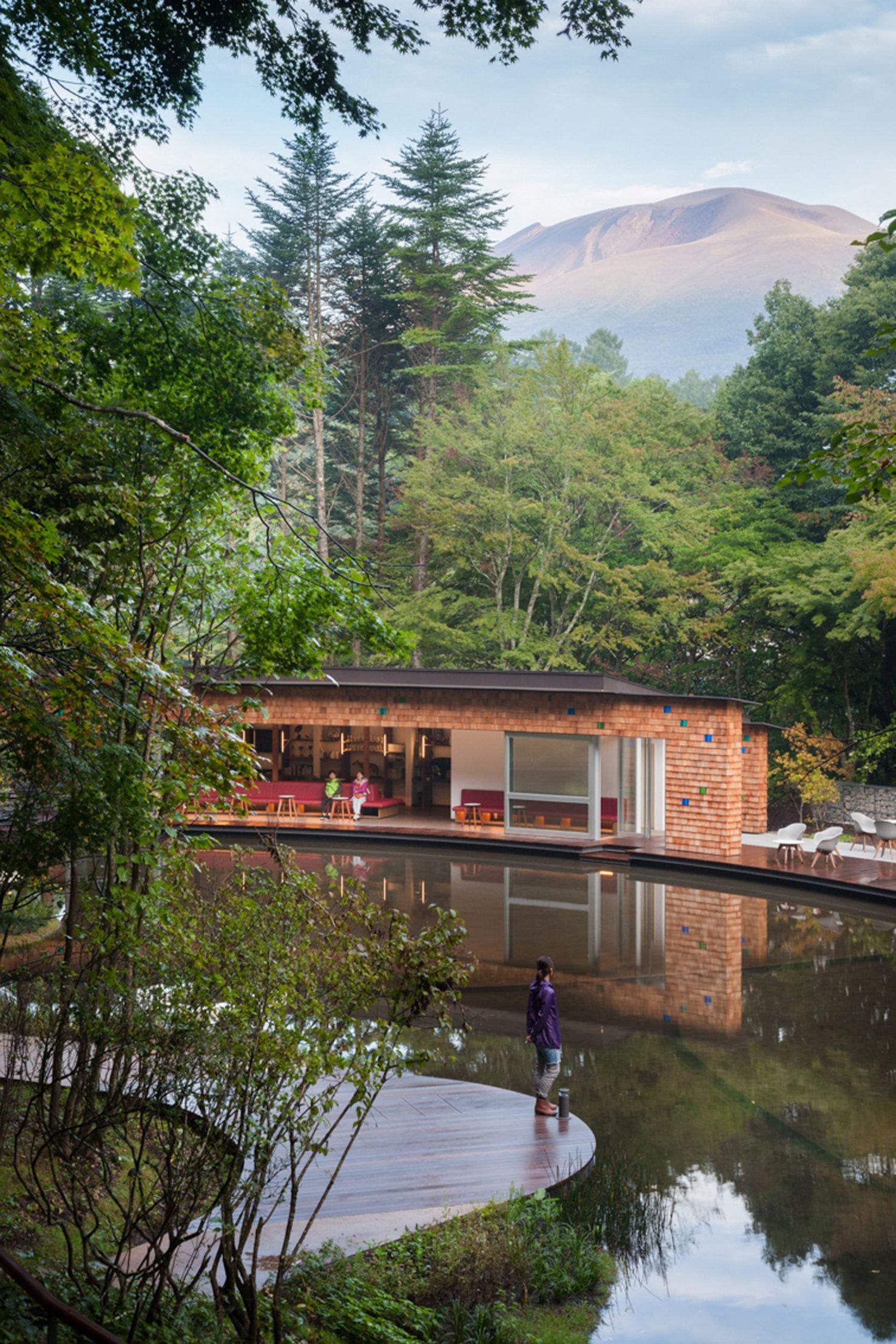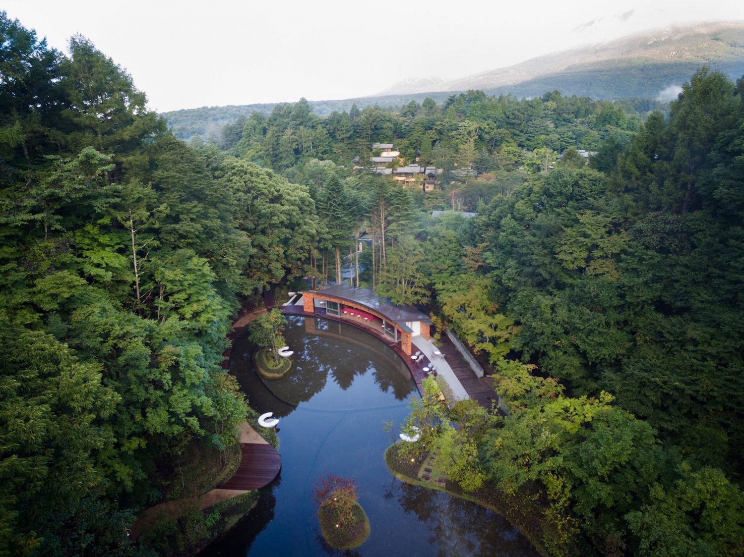 The location? At the foot of Mount Asama in the Japanese region of Karuizawa, about 90 minutes by bullet train from Tokyo, a popular destination for tourists wishing to explore and snowy landscapes in winter, but also the colored leaves in autumn and its hot springs in summer.
