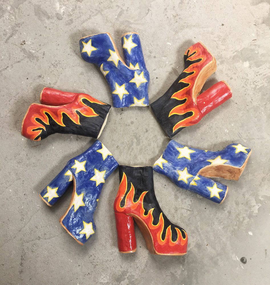 The idea that the fashion industry is often strongly influenced by art is no secret. Designers over the years have taken inspiration from great artists, Louis Vuitton by Van Gogh, Ferragamo by Serge Lutens or even Calvin Klein being influenced by Andy Warhol. However it’s only once in a while that we see the opposite happening, artists being influenced by fashion. Twenty-year-old Colombian ceramic artist Diana Rojas draws her influence directly from the industry of fashion, specifically, the world of footwear. The New Jersey based artist was initially inspired by a pair of Nike shoes she created and since then has created oversized and actual-sized versions of shoes such as Balenciaga crocs, Nike Air Forces and has even recently collaborated with Adidas on a giant pair of Stan Smiths. We linked up with the artist to have a chat about the thoughts behind her art pieces.