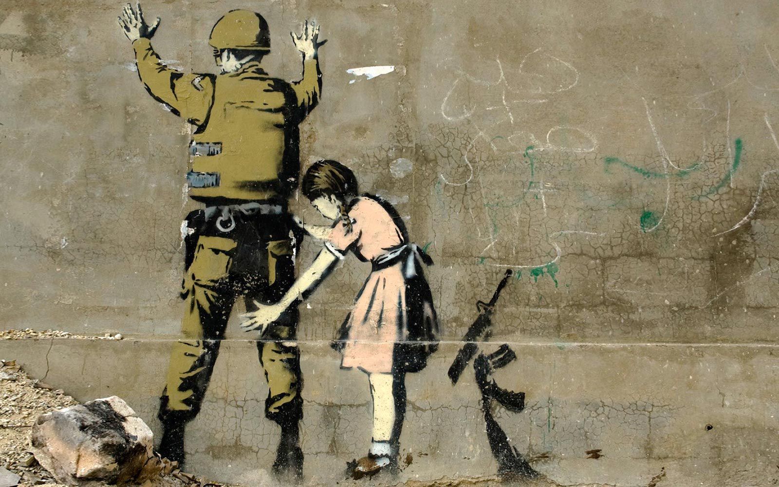VISUAL PROTEST, the name is a declaration of intent that exploits Banksy esthetic to make look cool Gaza War or the police repression.