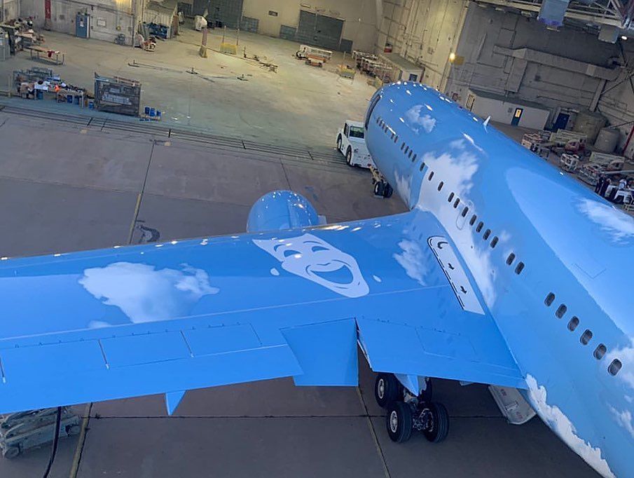 Over the weekend Virgil Abloh and Drake shared on their social media channels the first photos of the makeover that the creative director of Louis Vuitton designed for the rapper's private jet, the so-called Air Drake. The aircraft is a Boeing 767 Cargojet purchased last June by Drake for two hundred million dollars. Abloh painted it entirely blue with a pattern of clouds that closely resembles both the cover of Drake's 2013 album "Nothing Was The Same" and the main visual theme of Louis Vuitton's latest FW20 show, in which the set and several items featured the same pattern in an all-over print.
