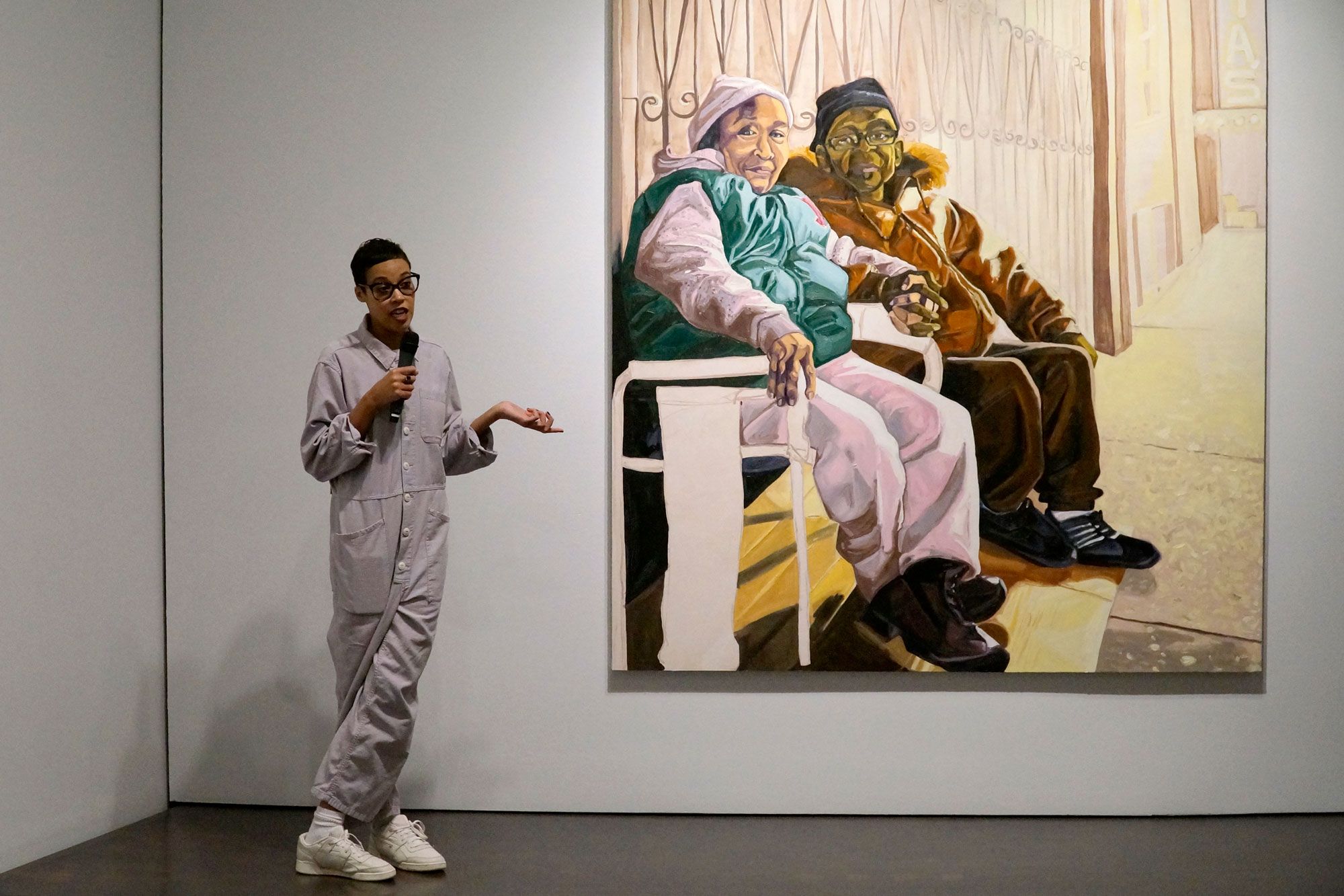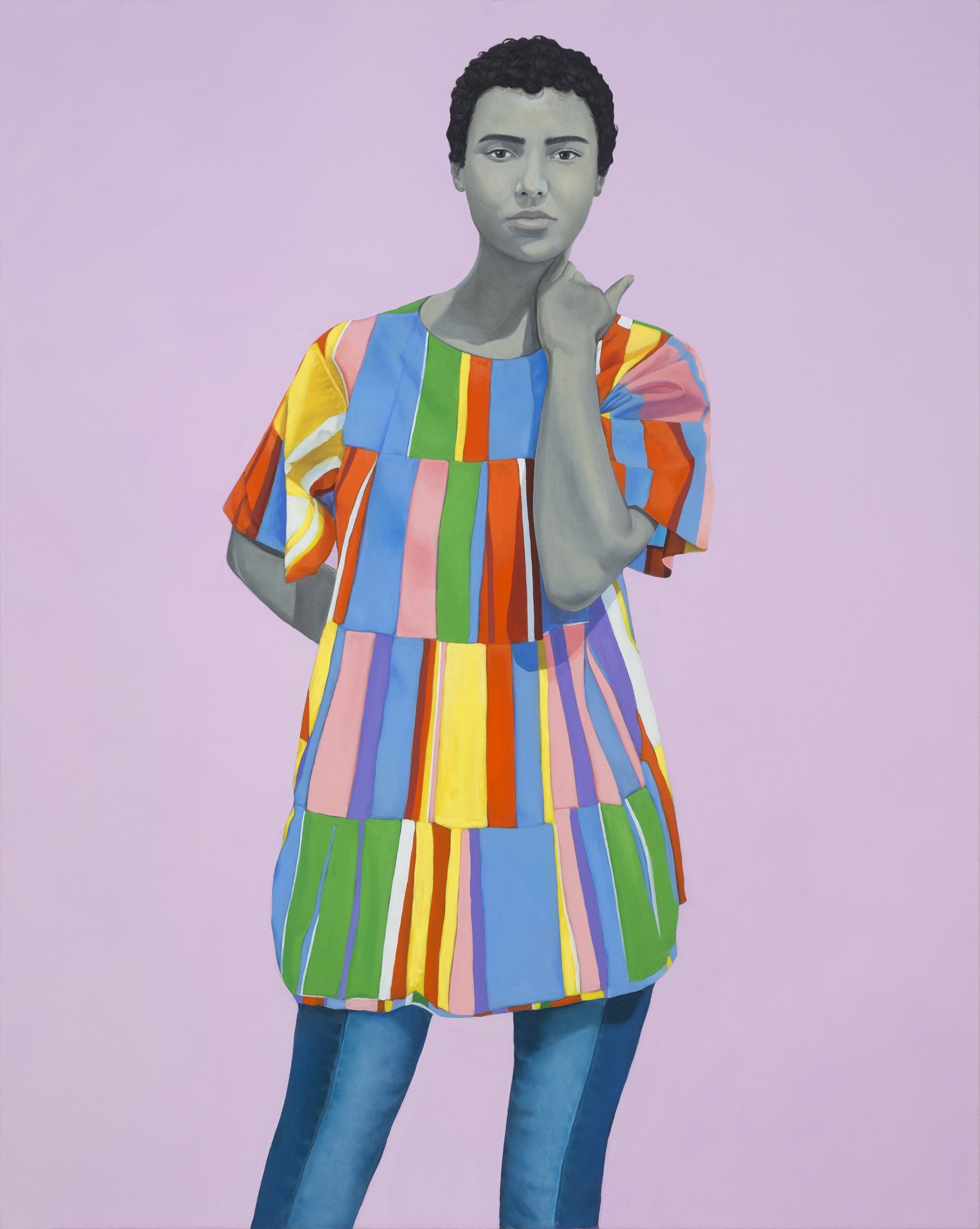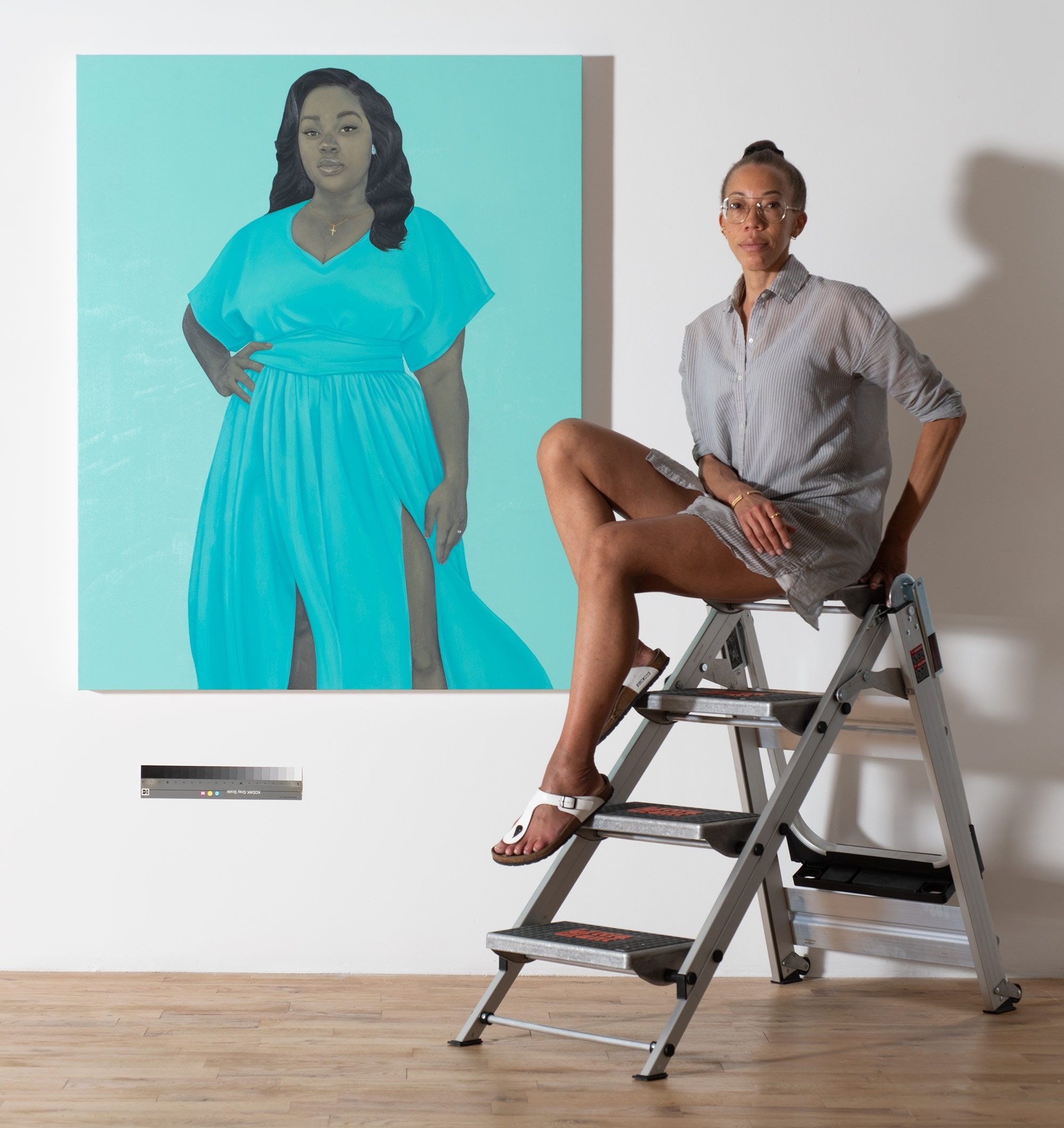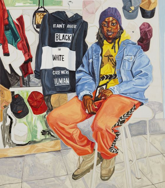 Jordan Casteel is a 31-year-old artist from Harlem, a rising star in the art world who has become famous for representing the everyday life of her neighborhood. Both artists were given carte blanche in the making of the work, with the sole constraint of representing one of the 4 brands chosen by Vogue. Marshall chose Off-White™, while Casteel's choice fell on Pyer Moss and the portrayal of Aurora James, a young black designer who had made headlines for the 15 Percent Pledge program, a campaign to support black-owned business.