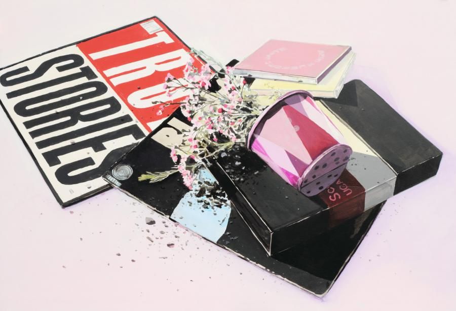 Le sue composizioni sembrano nature morte moderne, non convenzionali, fatte di ricordi dismessi ma ben radicati nell'immaginario collettivo afferente agli anni '80-'90. La musica emerge come una delle essenziali fonti d'ispirazione dell'artista, impacchettata insieme a fiori e piante rampicanti e offerta all'osservatore nella solitudine di un muro bianco a fare da sfondo alle opere.