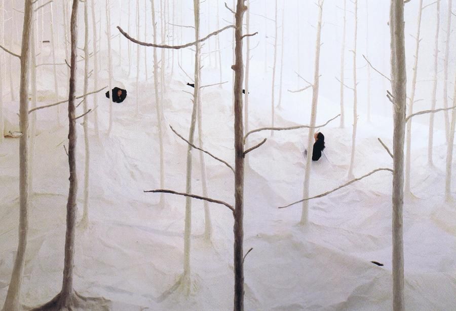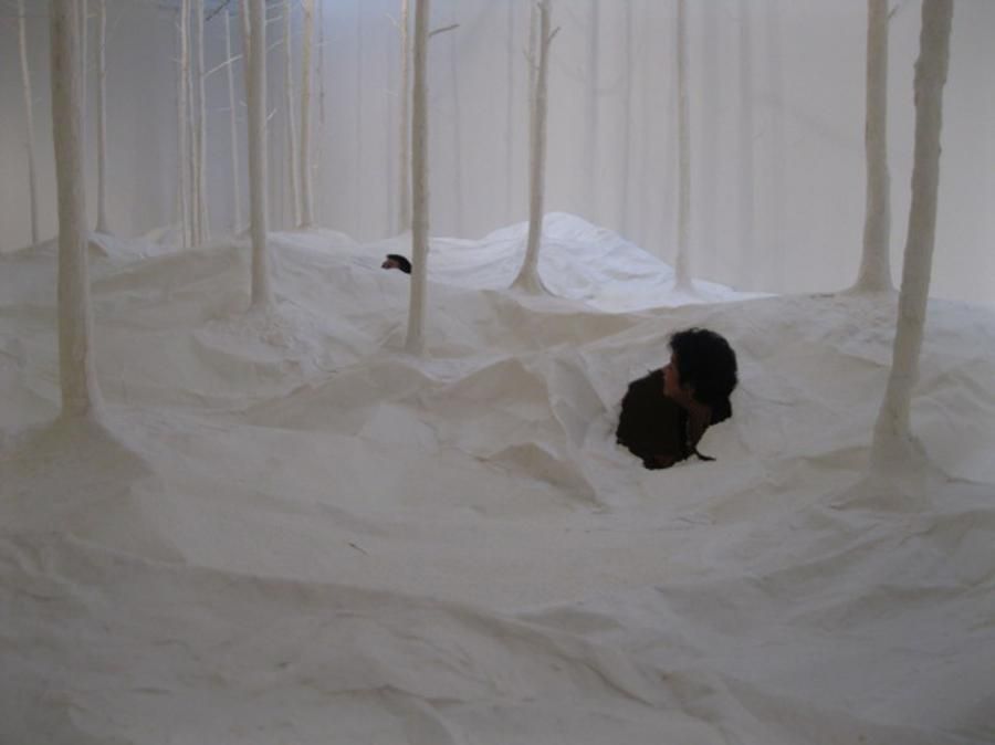 If by chance you are around Hong Kong, and you don’t know where to start your tour, we offer the Honk Kong Art Centre bye the end of this week will host an installation by Takashi Kuribayashi, “Wald aus Wald”, you will enter in another dimension. To enter, is the right word because your head will be able to pass a fake ceiling that will give way to a snowy landscape with trees that float above the floor of a room, part of an exhibition entitled “Vision Of Nature”.
