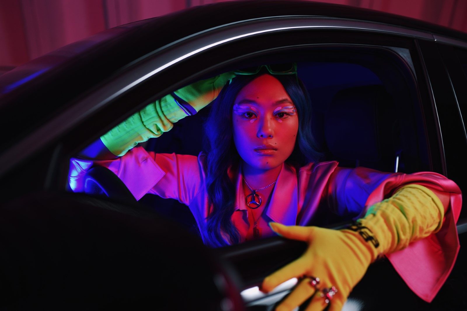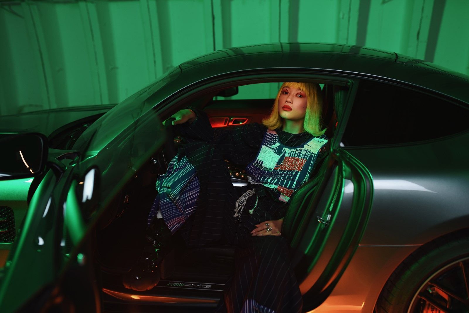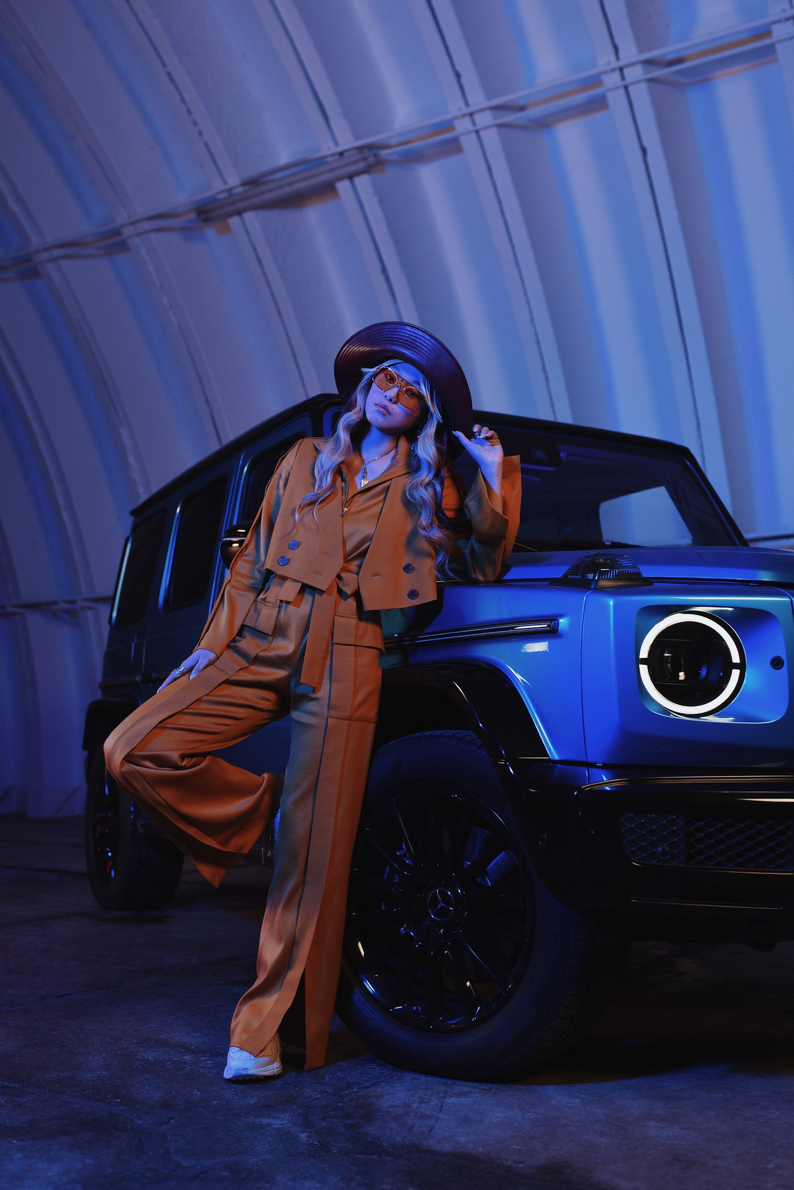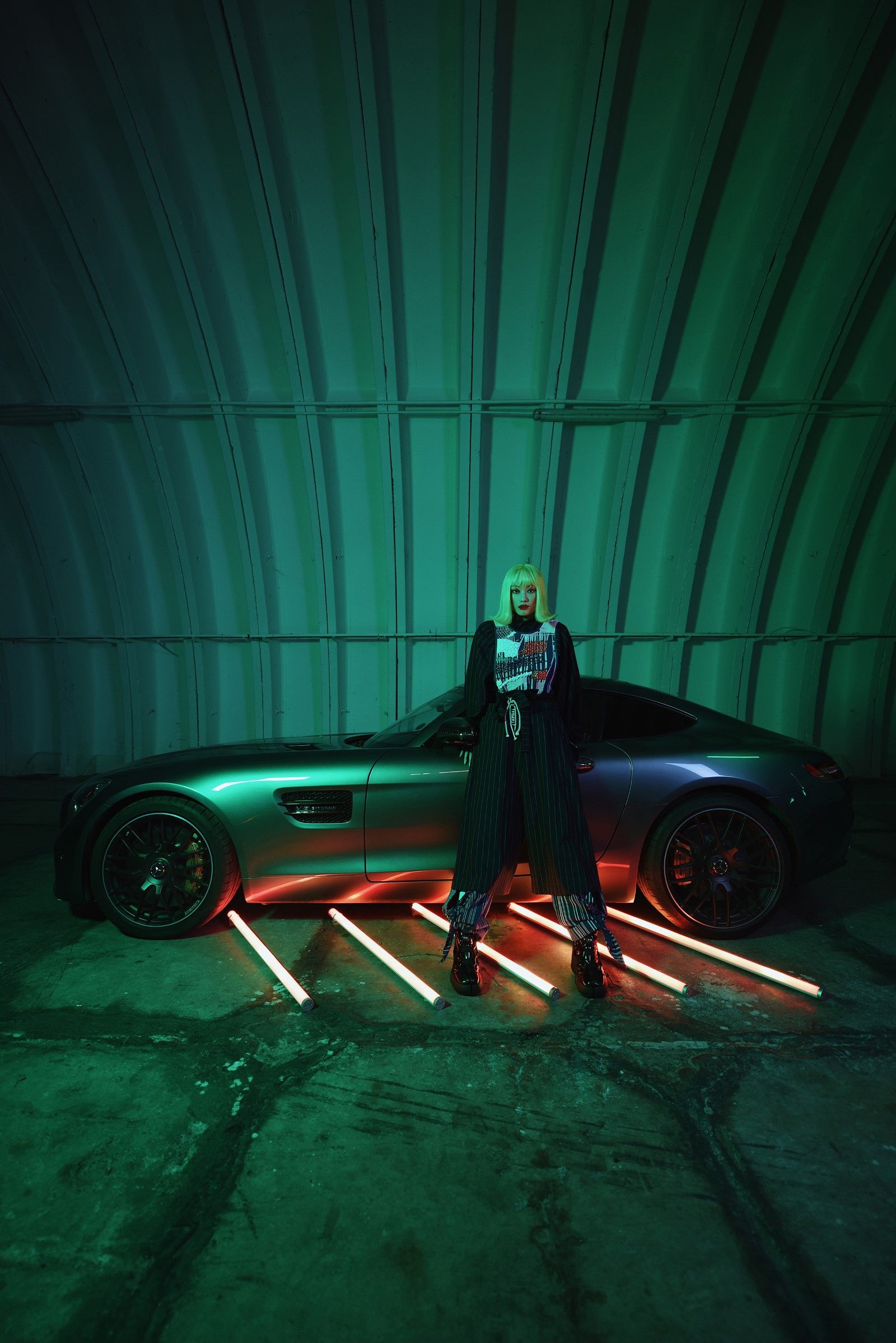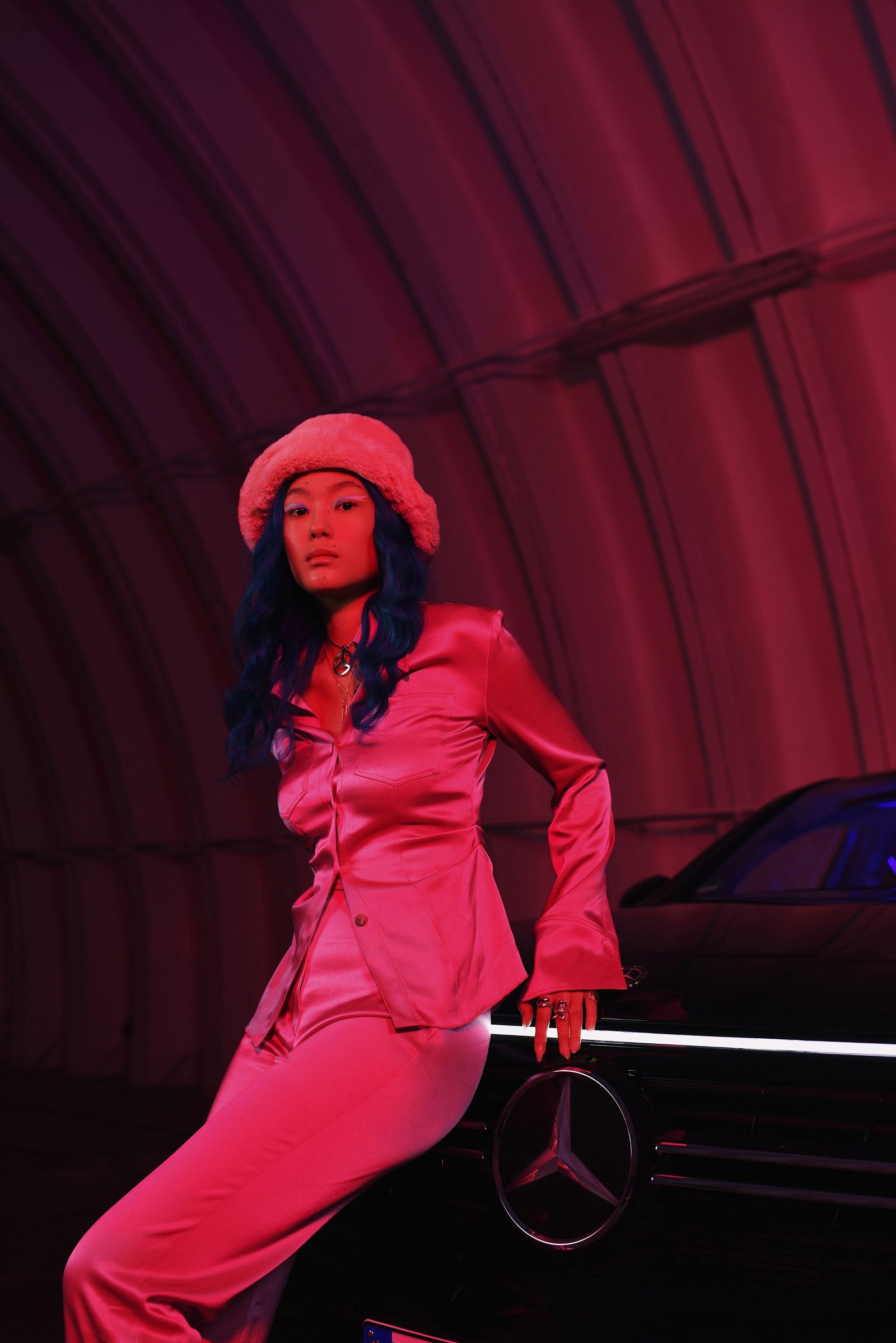 Through editorial images, video clips and TikTok, Kicki Yang Zhang changes different identities, all framed by the individual spirit that the Mercedes-Benz brand represents. In one of the shots, soaked in saturated orange lights, a blue G-Class wants to symbolize audacity and adventure. Instead, in the shots of the EQC, Mercedes-Benz's first all-electric vehicle, Zhang takes on a futuristic look and testifies to Mercedes-Benz's commitment to sustainability. Finally, Mercedes AMG's fluid lines are reproduced with those from men's clothing and are reflected in contrasts of shades of green and red colours. Together, the three moods want to enclose the thousand different declinations of the Mercedes-Benz personality.