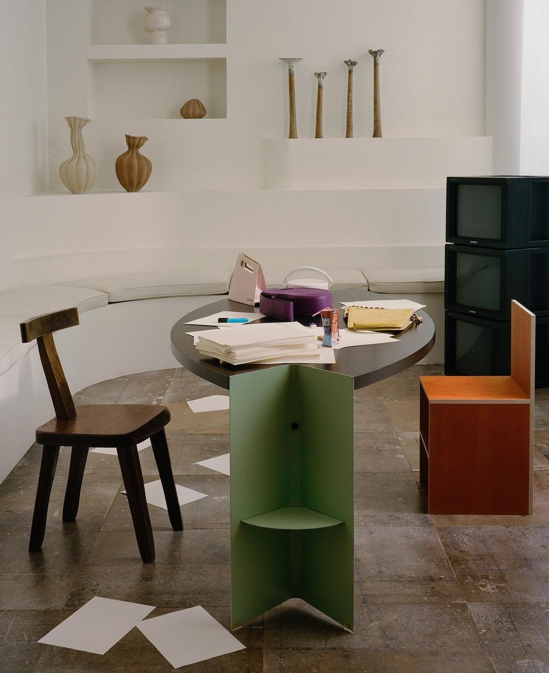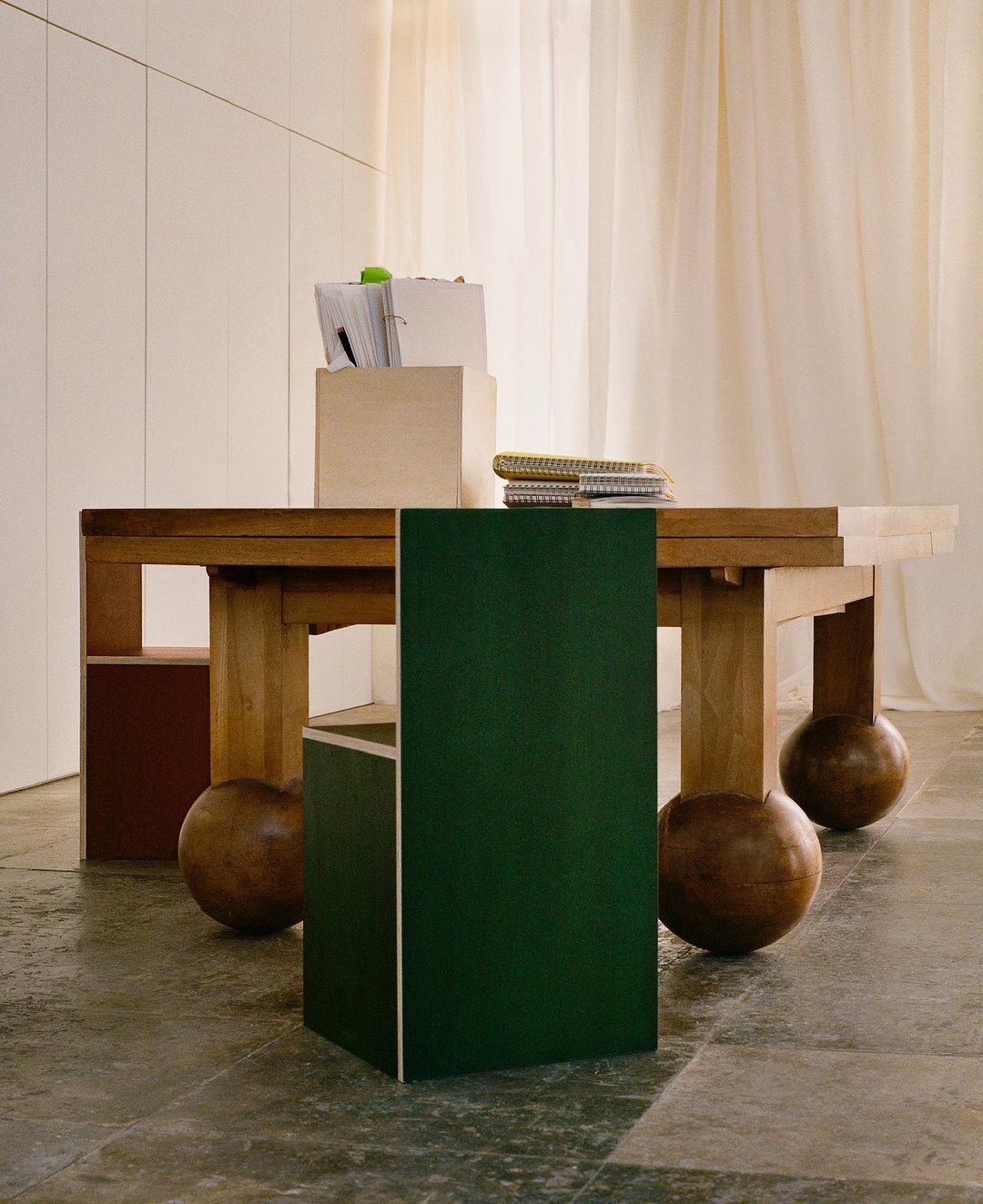 In the photographer's shots, all the love that Simon Porte Jacquemus feels for curved lines and craftsmanship emerges, with rounded tables, vases and sculptures with a rustic flavour and a playful sense of design, halfway between the love of vintage and witty innovation. The set design of the new office was curated by Till Duca Studio and Samuel Bégis who created office furniture capable of fully reflecting the eclecticism of the designer's inspirations.