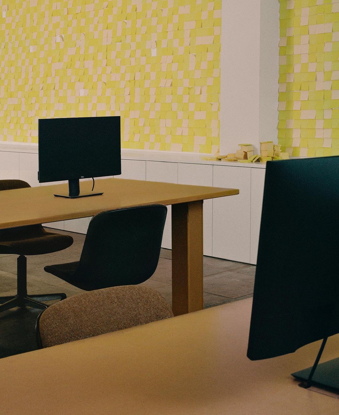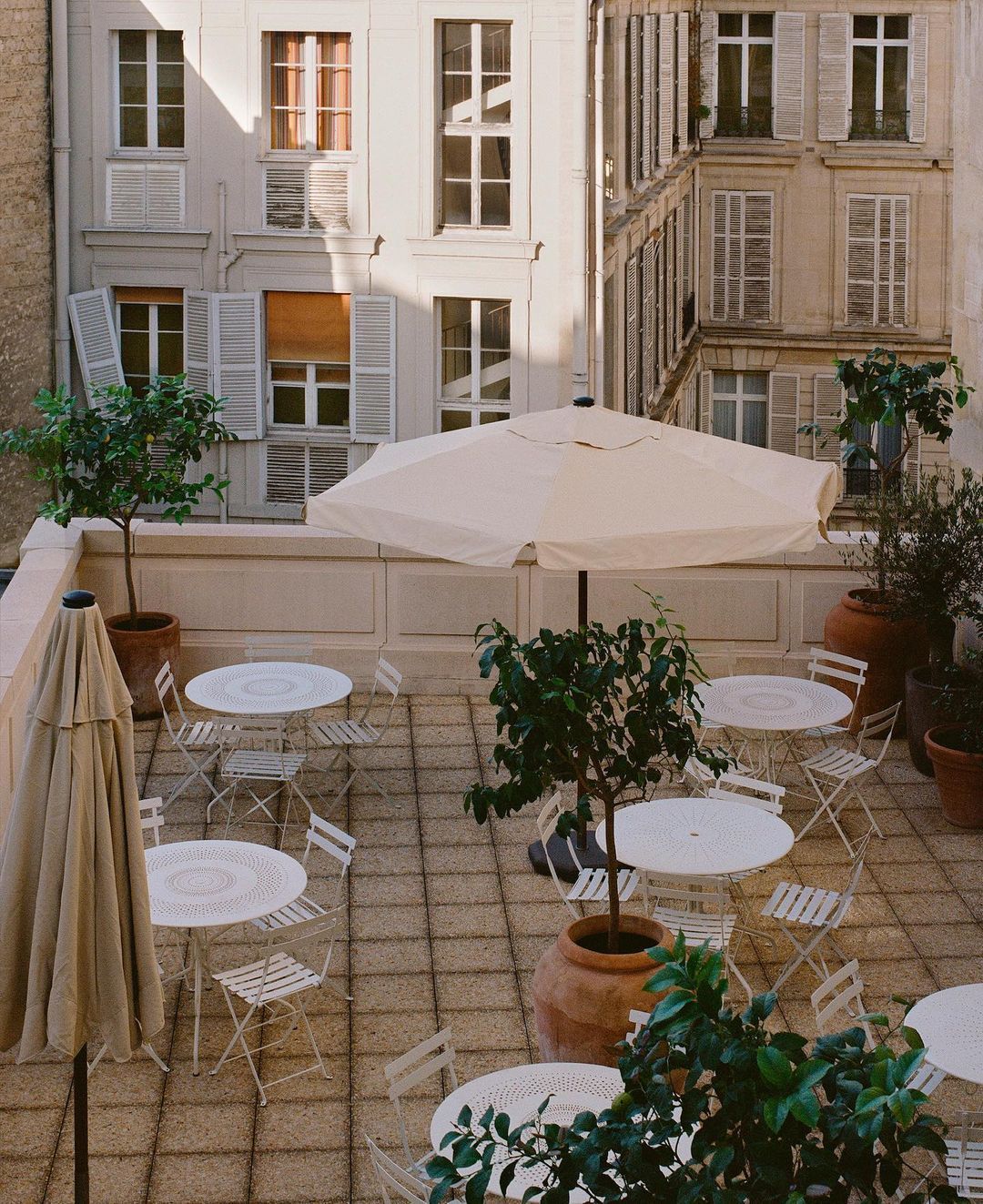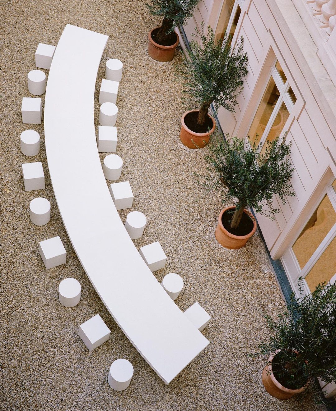 Leading the fans through a tour of the offices is also part of that strategy of transparency followed by Jacquemus who cultivates his fanbase online through a real visual autobiography, naïve and natural in some ways and carefully calculated for others. The most emblematic shot of this mood is in fact that of the cups in the sink, which takes up the colour scheme and the geometric of the rest of the shooting focusing on a daily detail that many would consider irrelevant and that instead represents the trace of a community, a conviviality also recalled by the many external tables designed for office breaks.