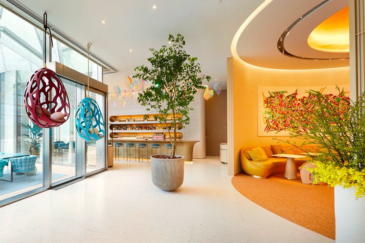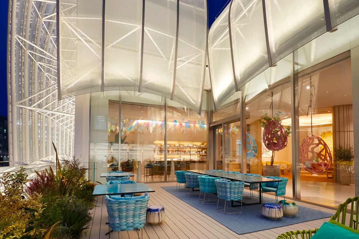 The two designers who gave the rooms their distinctive look are the architect Jun Aoki, former creator of two of Louis Vuitton's Japanese boutiques, and interior designer Tokujin Yoshioka, already in charge of the brand's furniture line as well as travel accessories. The first was involved in creating the interior spaces and was inspired by a nautical concept with a series of decorations reminiscent of sails in the wind; the second instead signed the futuristic furnishings of both environments.