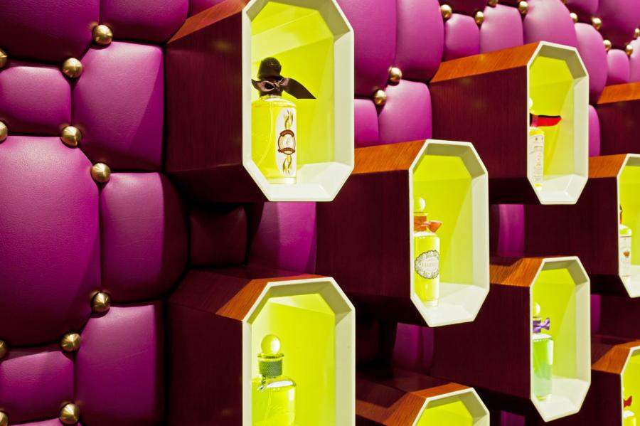 The history of the perfume maker Penhaligon's has its roots in Victorian London when bold eccentric miladies and daring young dandies were lingering on excesses dedicating themselves to a controversial lifestyle. Nowadays the company has extended its boundaries to Singapore with its first flagship store, finally reaching this way the Asian market. The Creative Director of Jenner Studio and born communicator Christopher Jenner has clearly and directly given shape to the brand vitality by realizing an original space and obviously using his wide knowledge about relationships between branding and design. The boundaries between Georgian, Victorian and Edwardian design styles have been boldly disregarded and artfully harmonized through contemporary detailing. Solid wood worktops of English craftsmanship interwine with tufted French stools and mosaics. Inlays and brass handles from Ireland climb up the walls painted in bright colors. The mix of British furniture and vibrant tones describes new futuristic lines. The set’s ready for the exhibition: exotic perfumes, floral bouquets, candles and scented soaps, skin care products and home fragrances enrich the range of already famous eau de toilettes as "Hammam", created by founder William Penhaligon in 1872, or the unique and sophisticated "Bluebell" which is still a bestseller. A sensorial experience that totally involves not only customers but even modern cosmopolitan Lords fascinated by luxury and good tastes. A theatrical atmosphere that guarantees the coexistence of different styles without affecting the 140 years old brand history. The first Italian store will take place in Milan as the perfect twin of the Asian one and the project’s yet signed by Jenner of course.