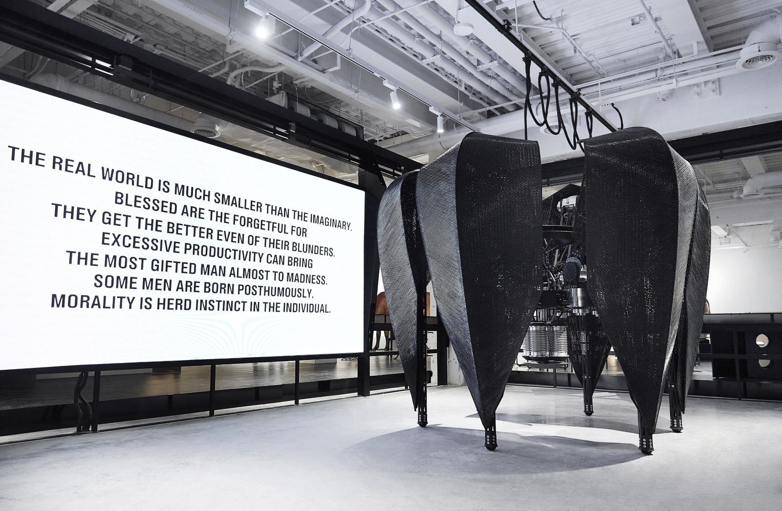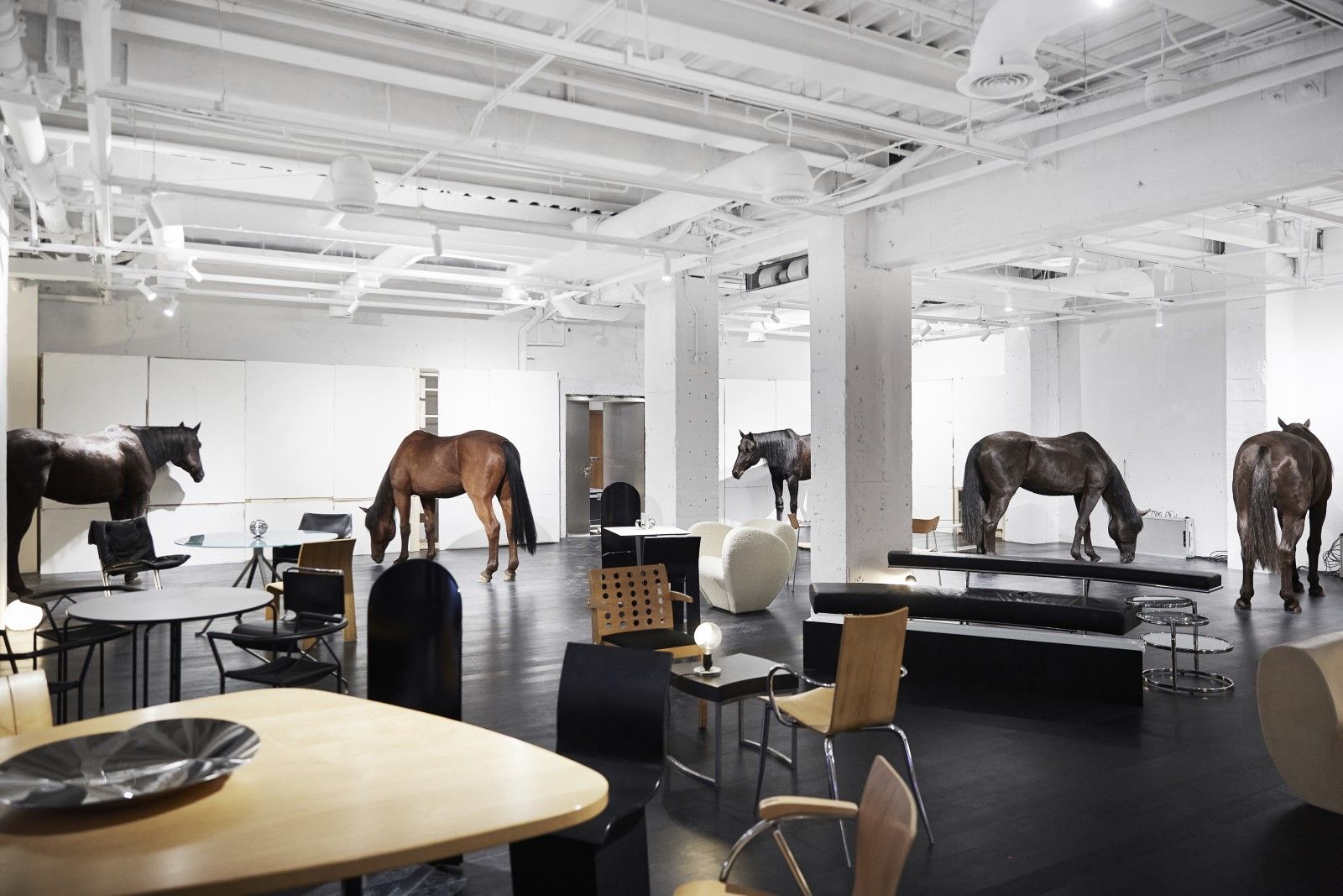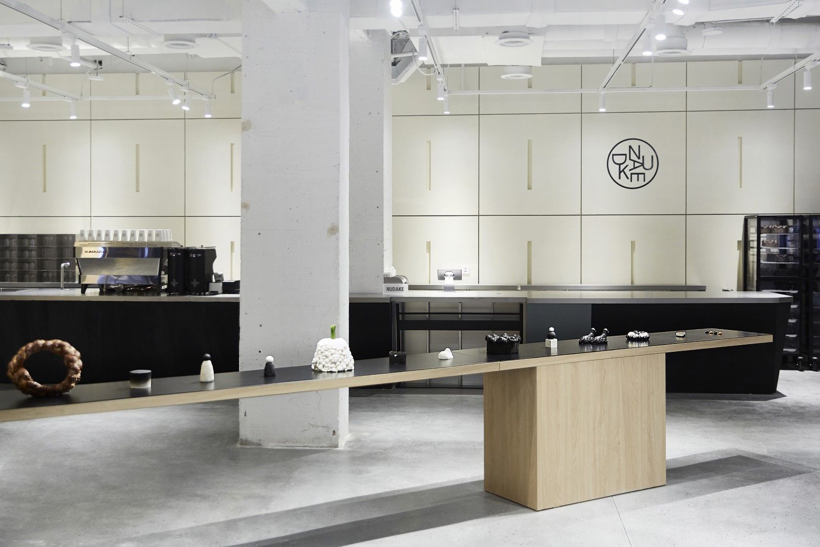 The first floor of the concept store houses Nudake's sweets in a space dominated by the Probe automaton and a herd of robotic horses capable of moving, with walls decorated with artwork and collages that express the experimental and always imaginative nature of the brand. On the second floor is the actual Gentle Monster store, the largest ever created so far. The area is dominated by large installations that go against the idea of the traditional layout of a store and represents the future retail philosophy of the store as well as the art exhibitions present at the end of the floor.