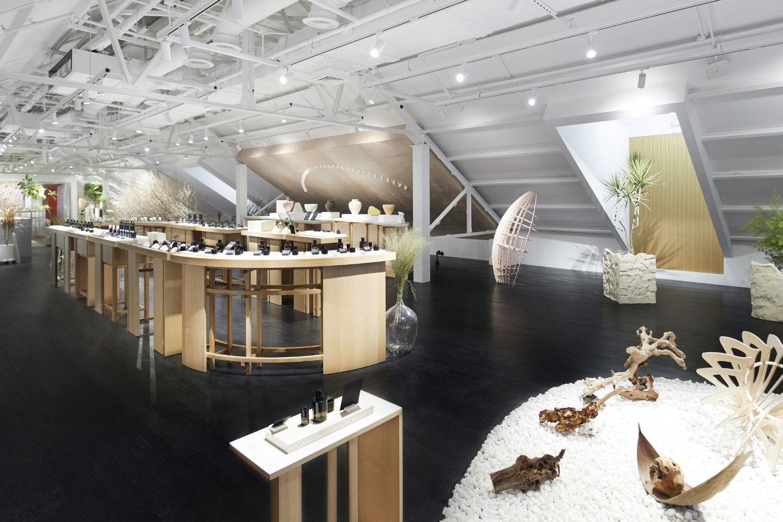 The third floor is practically a museum dedicated to exhibitions of various media and pop-ups of collaborations and houses an area called The Giant Who Arrived at the Bird Village dominated by a gigantic face-robot and hyperrealistic that moves its gaze all around. Finally, on the fourth floor, there is the Tamburins perfume shop, decorated with the Twig installation, a wall covered with branches that wants to represent the union of luxury and nature through the contrast of materials.