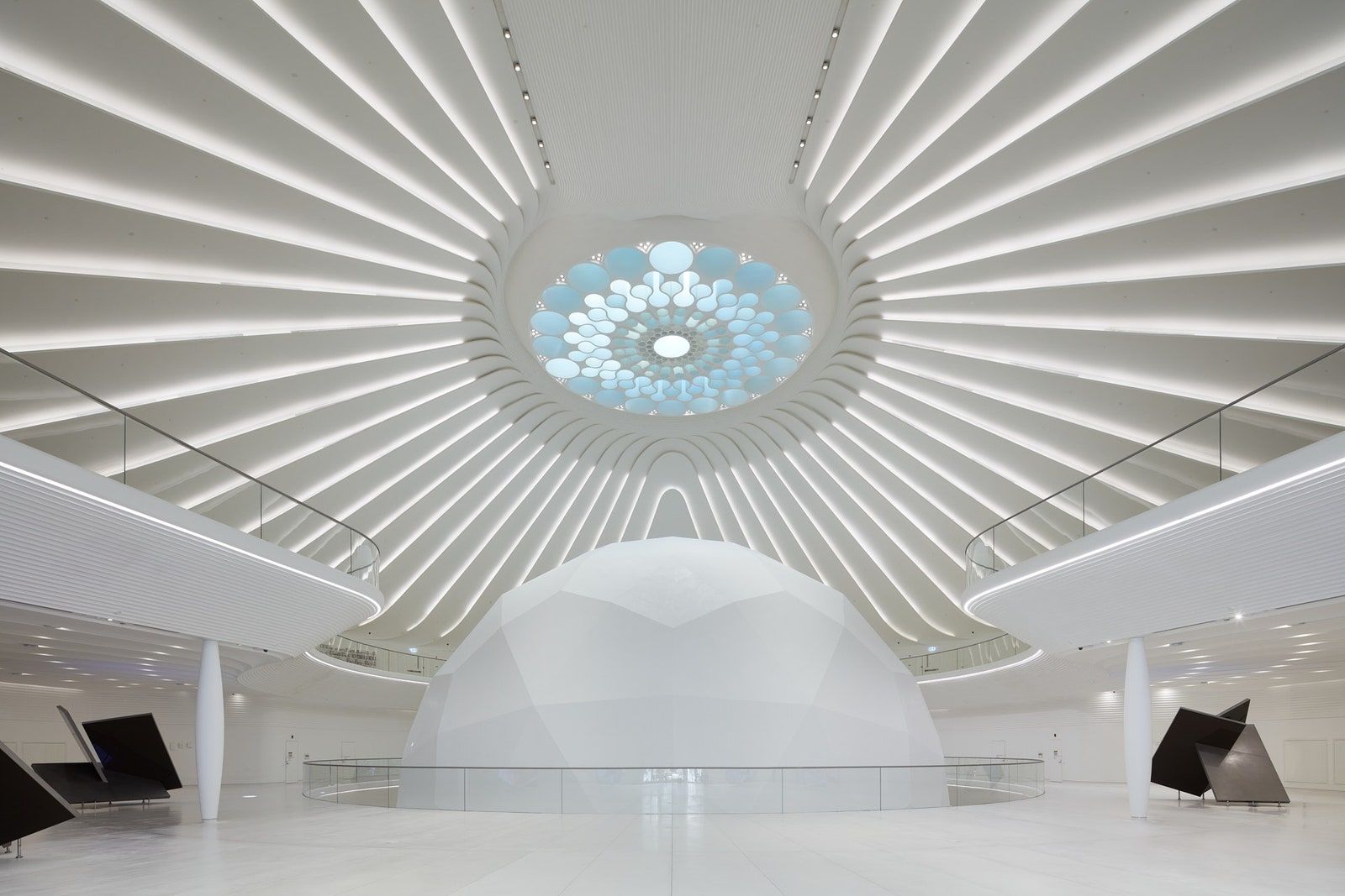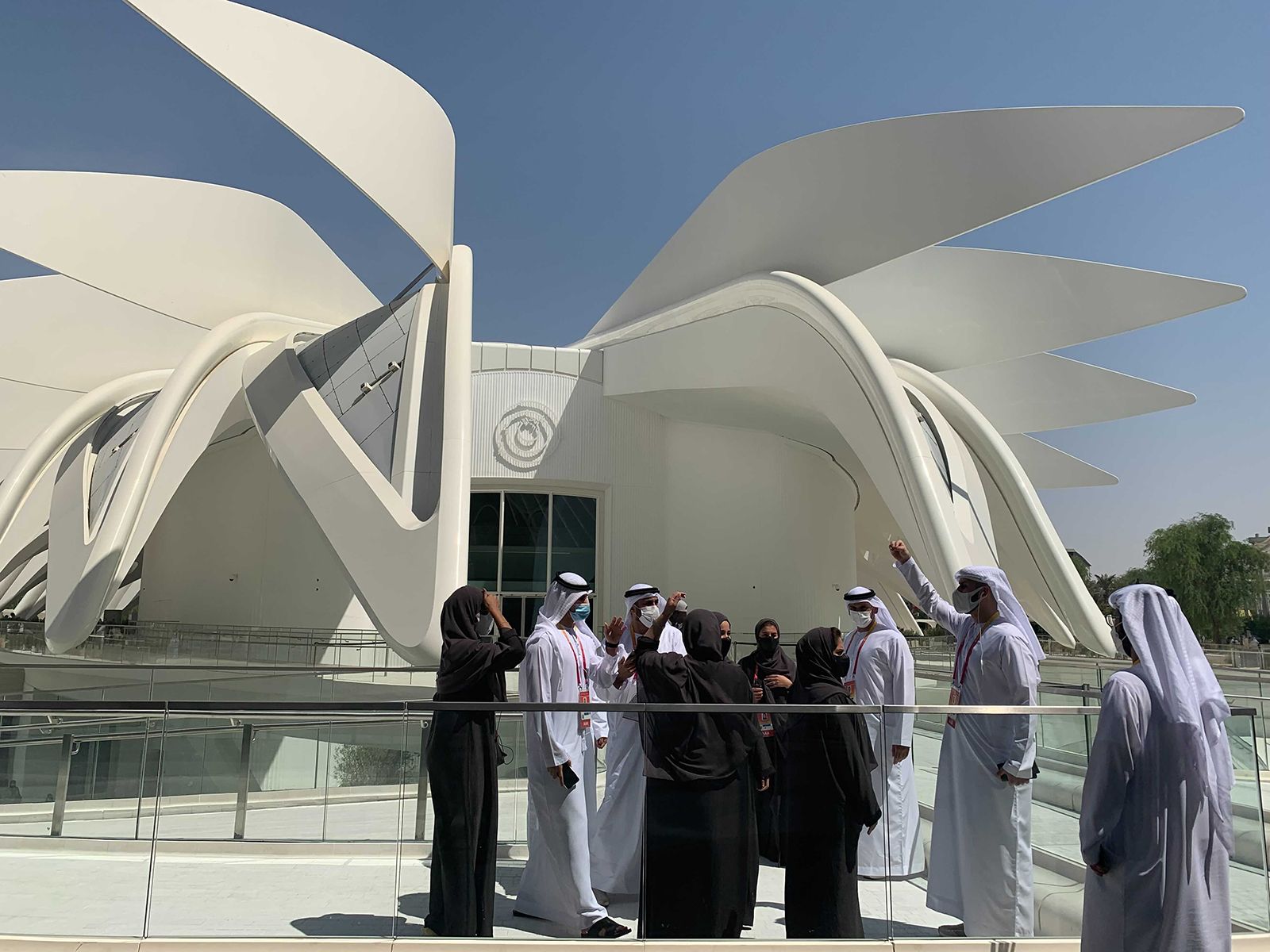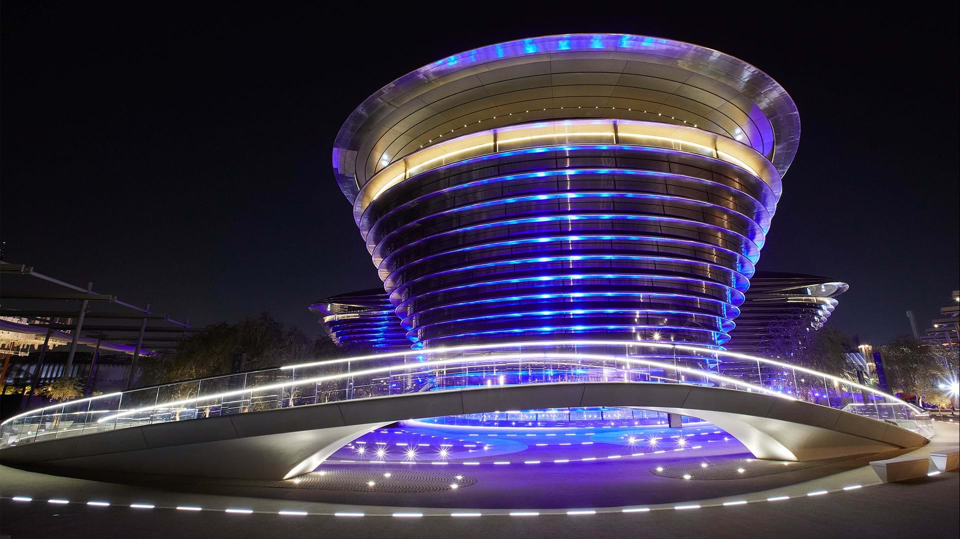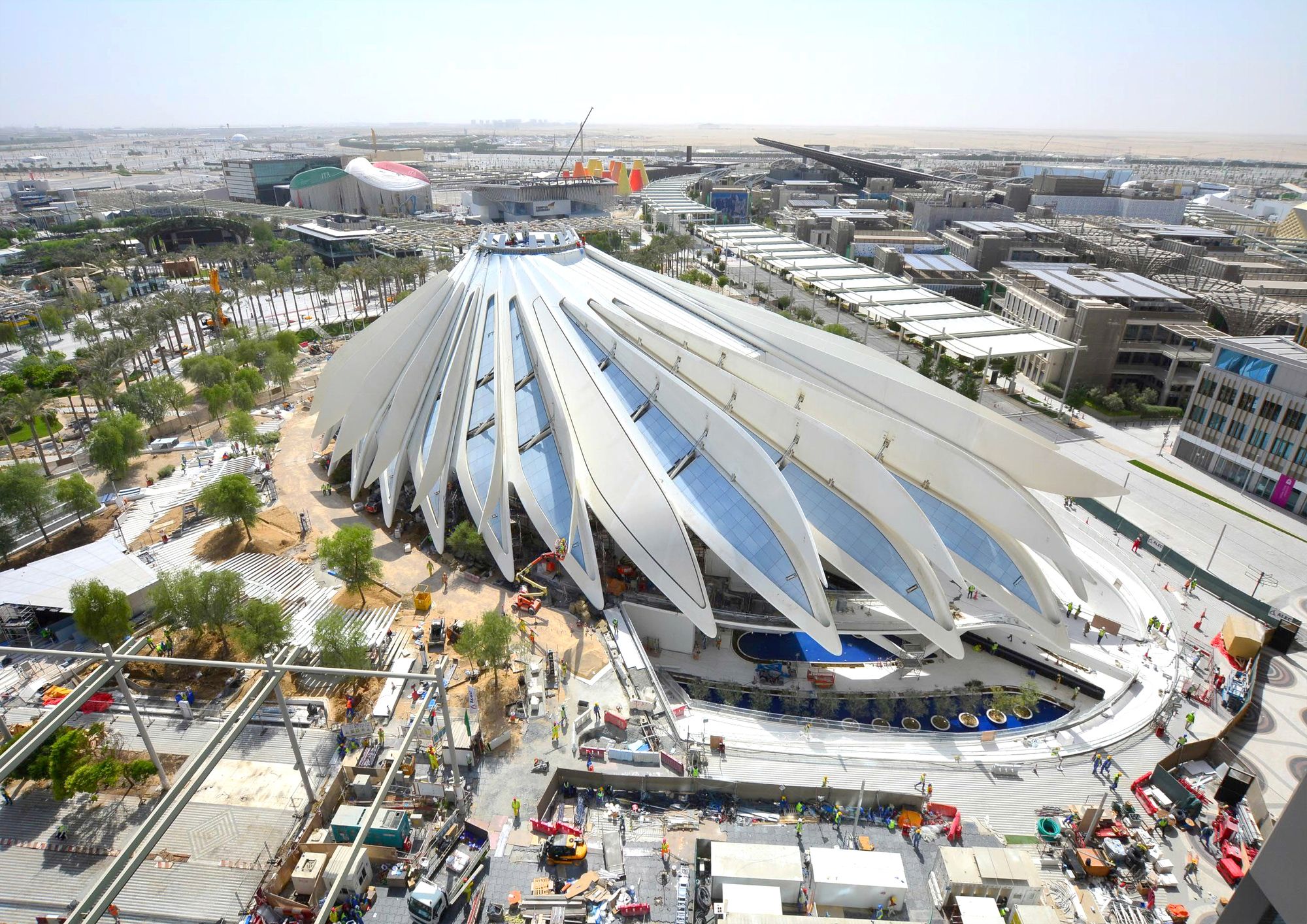 The pavilion designed by Calatrava for the United Arab Emirates is located in the area dedicated to the theme of Opportunity. The entire design is inspired by the founding values of the country it represents: starting from its shape, which takes up that of the falcon, the national animal of the UAE; up to the technological innovation that animates the four-storey structure, a symbol of innovation and pioneering. The pavilion's carbon fiber wings can open to reveal solar panels underneath – and all of the wings can be opened in about three minutes. Inside the pavilion there is a sphere that houses a 200-seat auditorium surrounded in turn by a system of platforms and walkways dedicated to exhibitions and events.