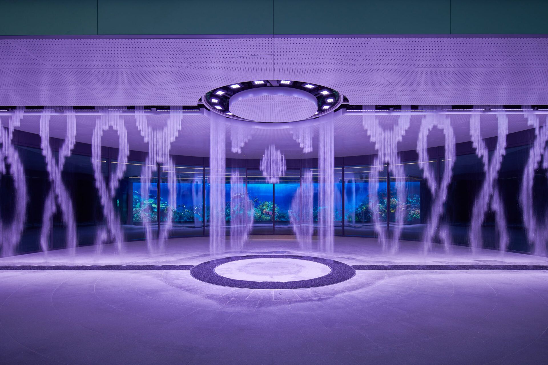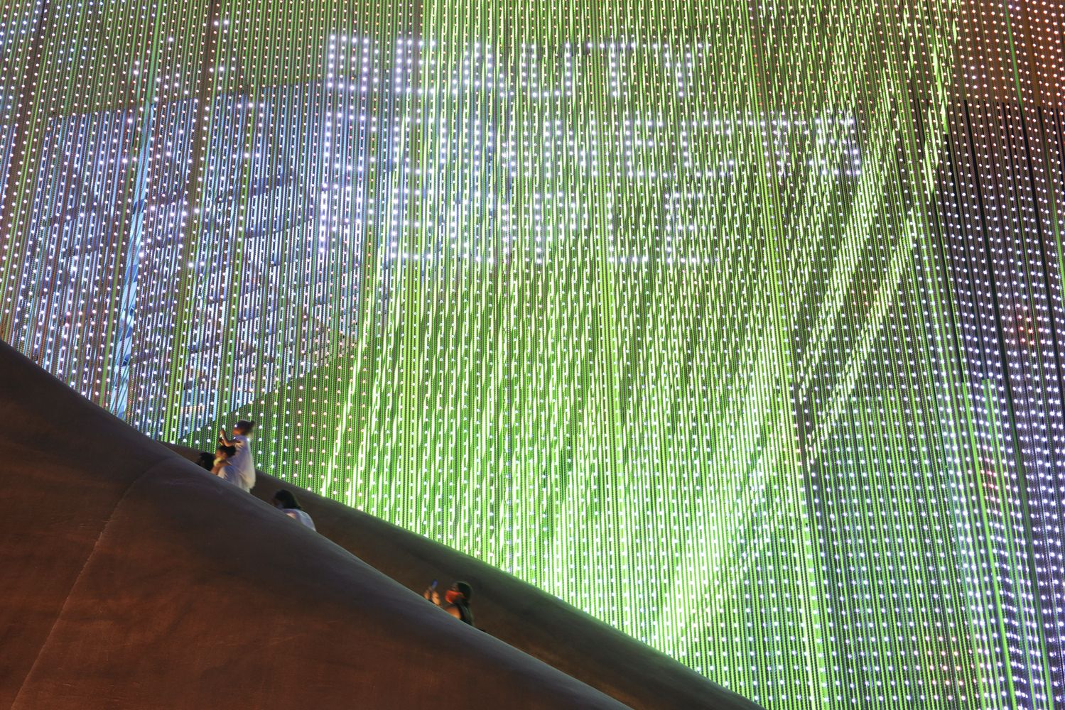 The Water Feature is not even a pavilion itself, yet it is the most visible monumental installation of the entire Expo and is located at its center, in the Al Wasl Plaza. The Water Feature is also an impressive and beautiful work, a sort of circular arena with curved walls thirteen meters high from the top of which rhythmic waterfalls of water fall during the day that pour towards the ground but which, at the height of visitors, disappear between the holes of the rock without a trace. At night the show is repeated, only that the waves rise to the top instead of descending defying the laws of physics. At the center of the installation then there is a fiery circle whose flames burn changing colors and shades. The result was obtained by the Californian studio WET Design who organized the water choreography using supercomputers and coordinating with Ramin Djawadi, the composer of the Game of Thrones soundtrack, for the musical accompaniment of the show.
