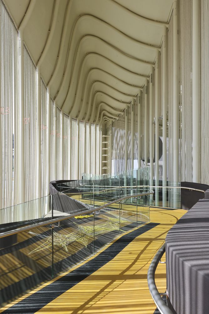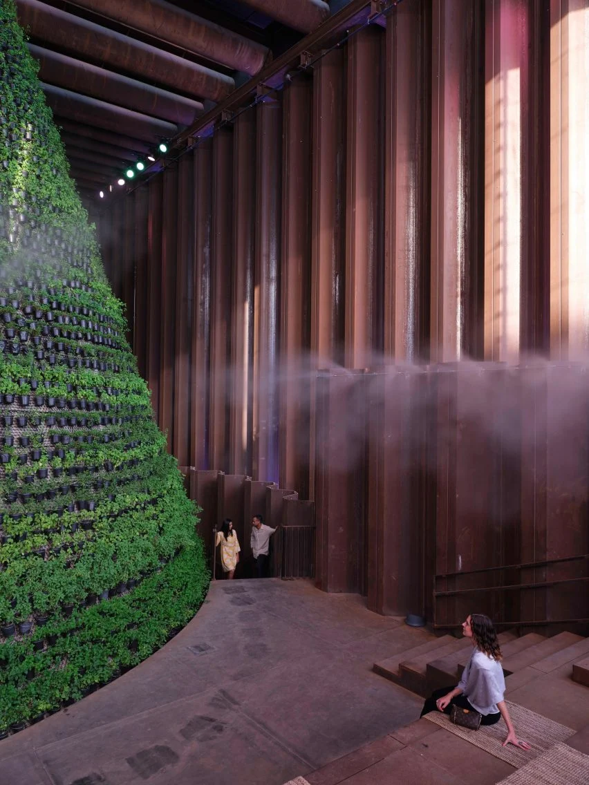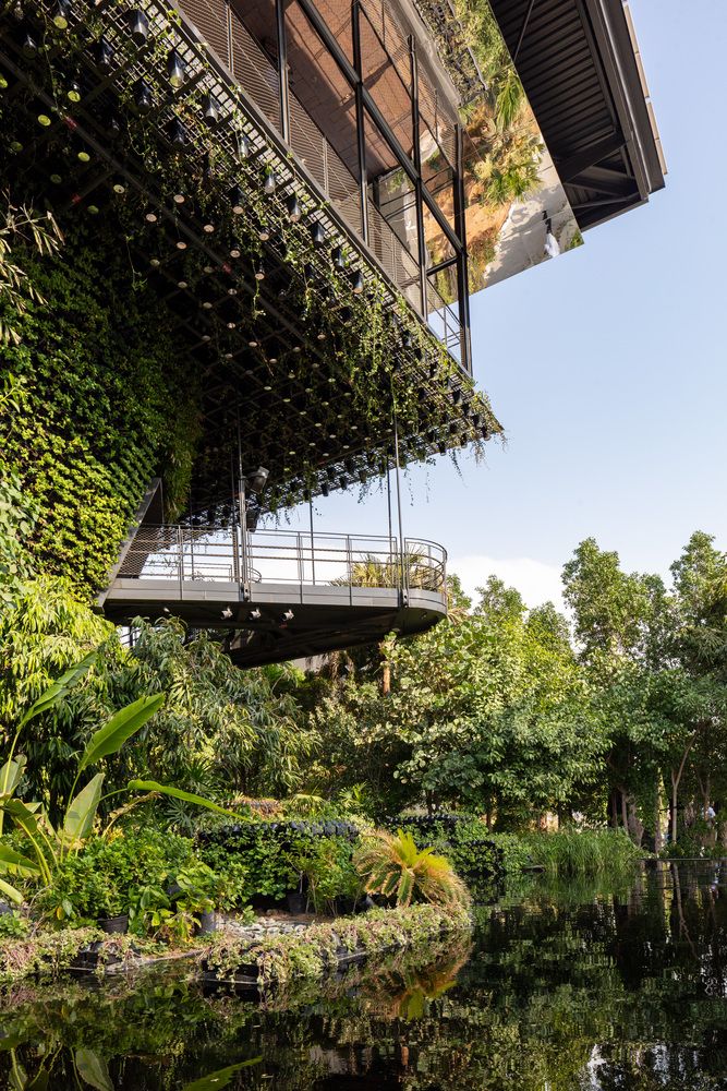 The Singapore Pavilion designed by WOHA Architects and landscape design studio Salad Dressing aims to be the demonstration of how to achieve sustainable urban planning by bringing together architecture, nature, technology and culture. Under the title Nature.Nurture.Future, the pavilion re-imagines the appearance of a hypothetical Singaporean building according to the City in Nature concept. With over 170 varieties of plants from different Singapore habitats and set within different layers of greenery, from hanging gardens to vertical walls, the pavilion creates a three-dimensional green space, transforming tropical rainforests, mangroves and even rivers into architecture. Drinking water produced through the on-site solar desalination process is used for drip irrigation, minimizing water consumption. Finally, three different prototypes of climbing robots cross the green walls, inspect plant health and collect environmental data.