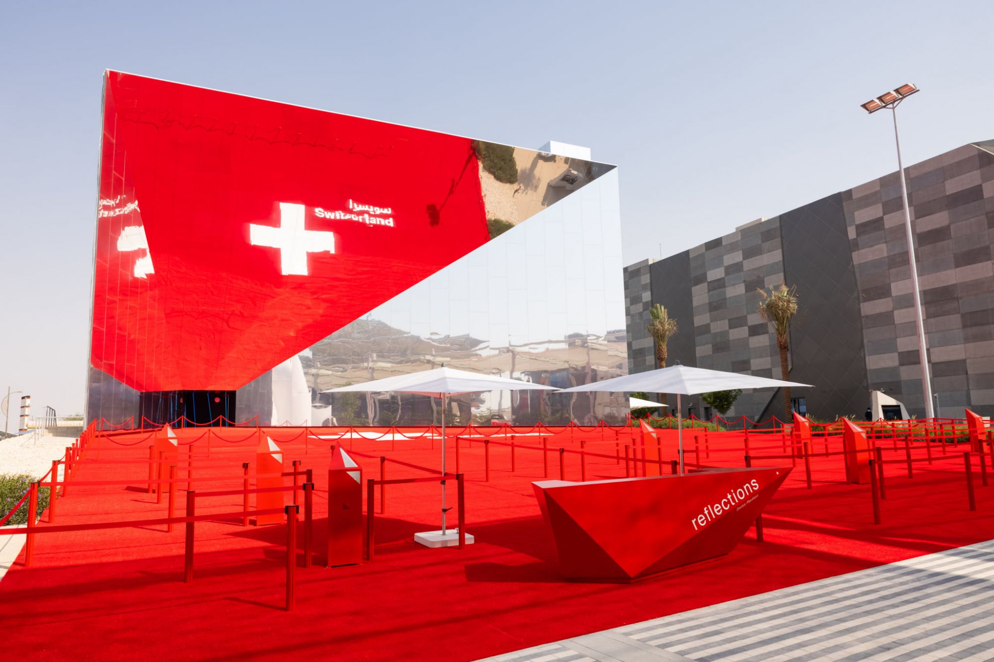 Reflections is the official name of this pavilion signed by the architectural firm OOS. If from the outside its appearance is reminiscent of the classic Bedouin tent but in a hyper-reflective version, passing inside, visitors will not only be able to see the landscape of Switzerland inside, along with exhibitions and exhibitions that will tell the values of the country and the state of its technological advancement. After passing the mirrored façade, you will enter a crystal gallery that leads into a dark room where you can experience the soundscape of the Swiss mountains and observe a digital exhibition that explores nature and the main attractions of the country.