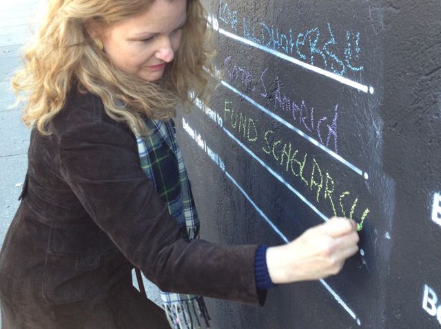 It’s easy to get caught up in the day-to-day and forget what really matters to you. With help from old and new friends, Candy turned the side of an abandoned house in her neighborhood in New Orleans into a giant chalkboard where residents can write on the wall and remember what is important to them. Before I Die is an interactive public art project that invites people to share their hopes and dreams in public space. Painted with chalkboard paint and stenciled with the sentence “Before I die I want to _______”, the wall becomes an enlightening way to get to know your neighbors and discover what matters most to the people around you. It creates a public space for contemplation and reminds us why we want to be alive in the world today. It’s a question that changed Candy after she lost someone she loved very much, and she believes the design of our public spaces can better reflect what matters to us as a community and as individuals. This was the basis for her graduate thesis.