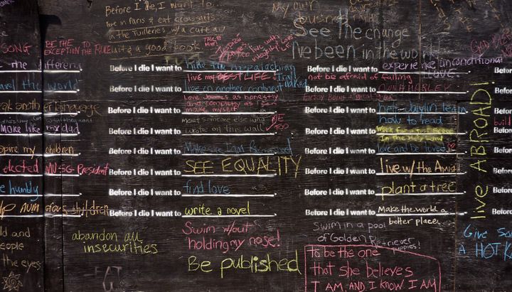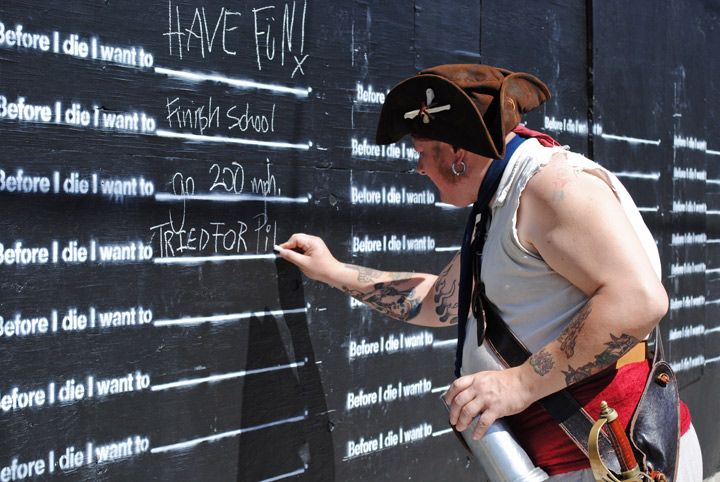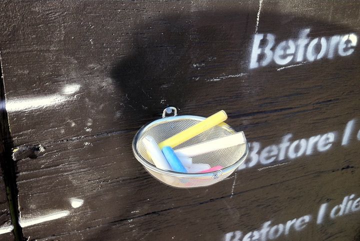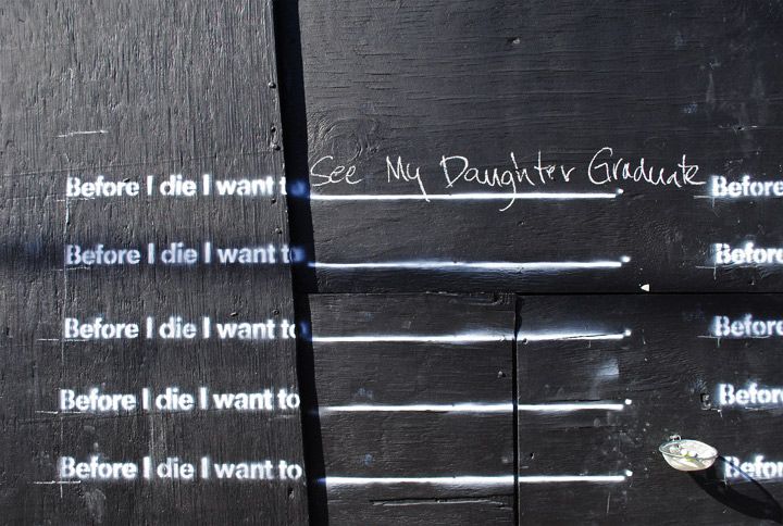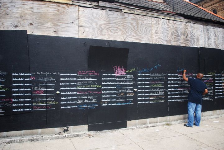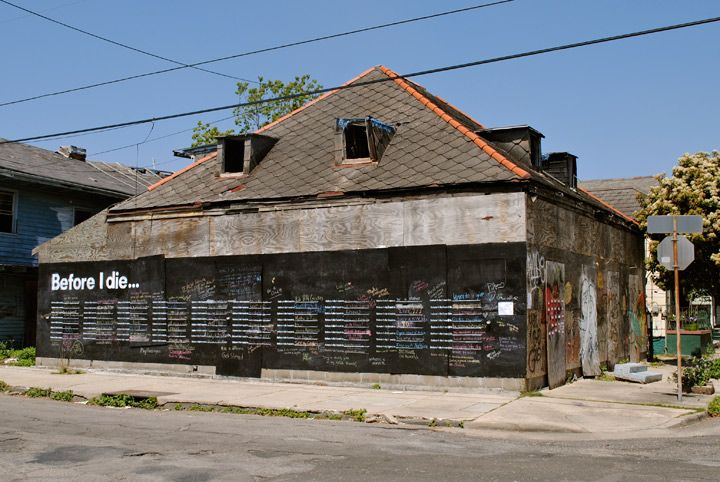 Candy una ragazza di New Orleans, con l'aiuto di amici ha trasformato il lato di una casa abbandonata del suo quartiere in un muro dove si può scrivere ciò che è importante per voi. Before I Die è un progetto interattivo di arte pubblica che invita le persone a condividere le loro speranze e sogni in uno spazio pubblico. Una enorme lavagna con gli stencil "Prima di morire voglio _______". Il muro diventa uno spazio pubblico per la contemplazione e ci ricorda perché vogliamo essere vivi nel mondo di oggi. Before i Die è una domanda che Candy dopo aver perso qualcuno che amava molto, si è posta più volte e lei crede che il design dei nostri spazi pubblici riflettano meglio ciò che conta per noi come comunità e come individui. Questa era la base per la sua tesi di laurea.
