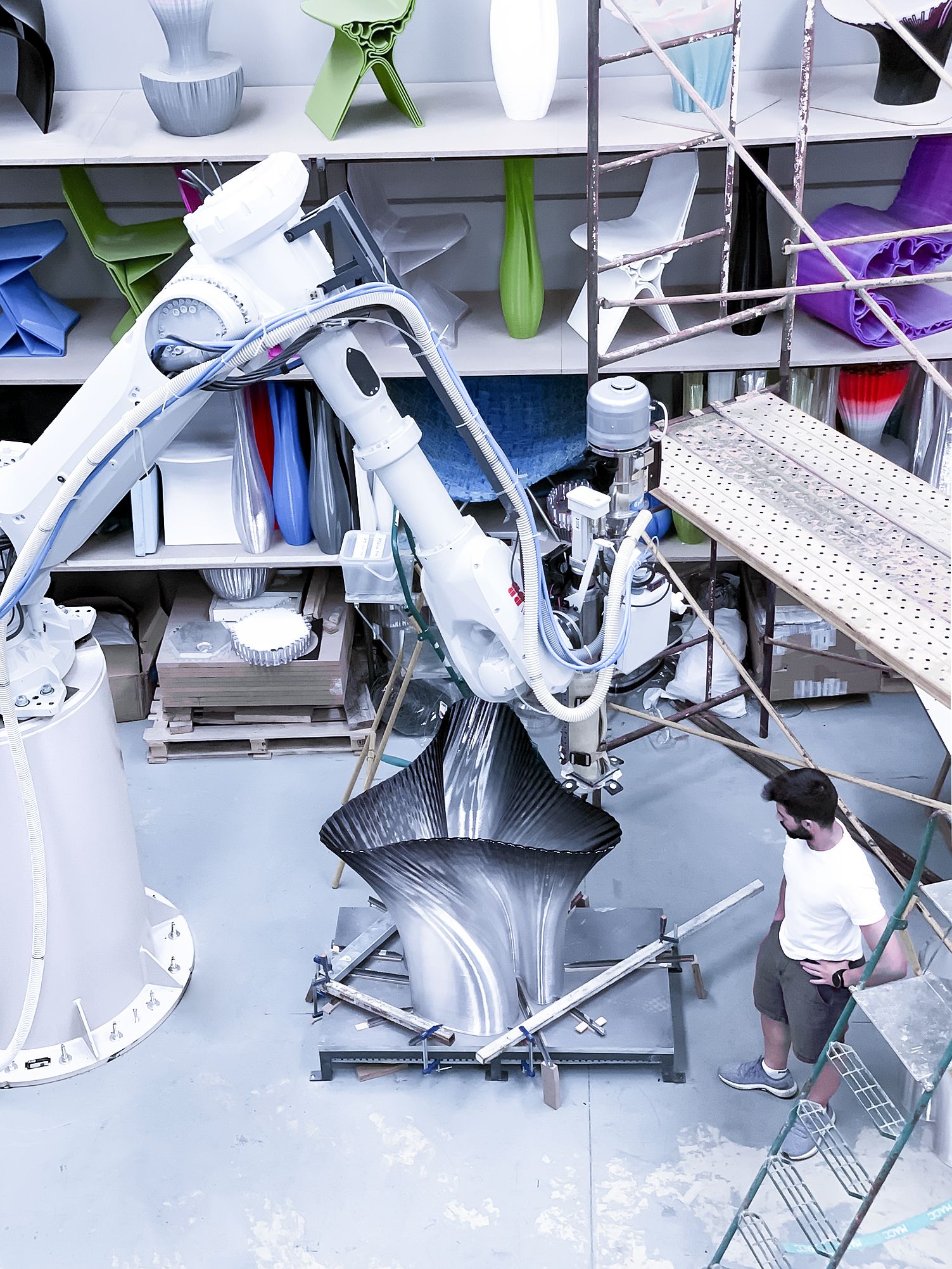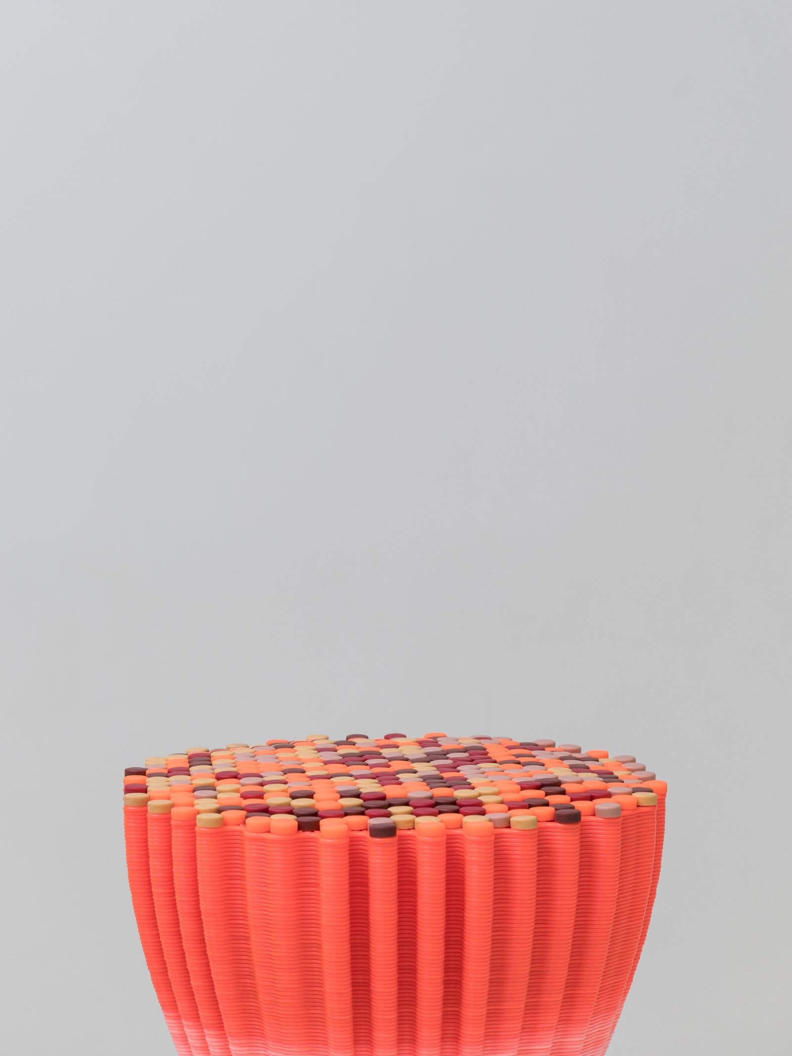 This freedom to range through different languages lies in Nagami's own methods. As co-founder Manuel Jìmenez Garcia explained in an interview 2018: «Additive manufacturing technologies allow for formal freedoms that would be unattainable with other methods. The type of geometry that our brand promotes would have little viability if we used more traditional technologies, such as injection or blow molding, or even other numerical control technologies». And if much of the design of the traditional product can be described as the practical way of circumventing production limitations, it can be seen how Nagami has changed the paradigm, adapting the production technology according to the singular needs of each product – with the added advantage of avoiding the waste of materials as with 3D printing only the material necessary for the creation of the single product is produced. Despite being very complicated, in fact, the design of the VoxelChair v1.0, which is now part of the permanent collection of the Centre Pompidou, was carried out without smudges or calculation errors but above all without producing waste.