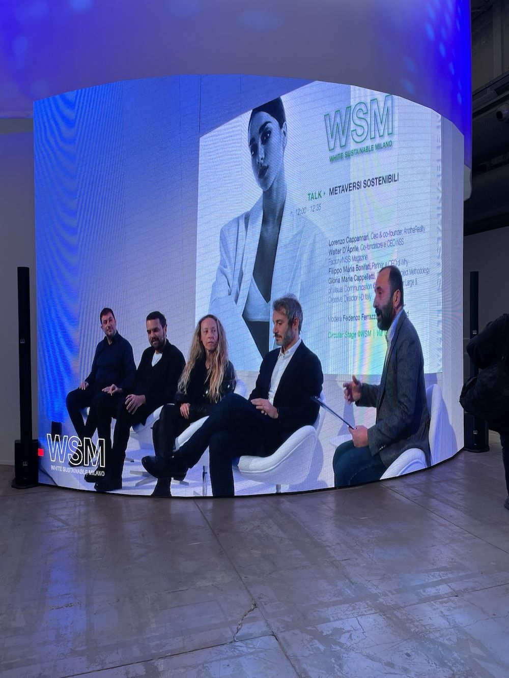 Four Oculus were available to the visitors of the fair, some of whom had never worn a visor, and a QR code to be scanned to get all the basic information to understand the experience. Between amazement and scepticism, hundreds of visitors had a taste of nss' colourful Web 3, guided step by step to the discovery of a world so distant and yet so close to our daily lives. On 26 February there was also a talk centred on the theme Susteinable Metaverses, moderated by Federico Ferrazza, editor of Weird magazine, with Lorenzo Cappannari, Filippo Maria Bonifati, Gloria Maria Cappelletti and Walter D'Aprile, founder of nss, as guests in a debate on the future of fashion between technological innovations and changing times.