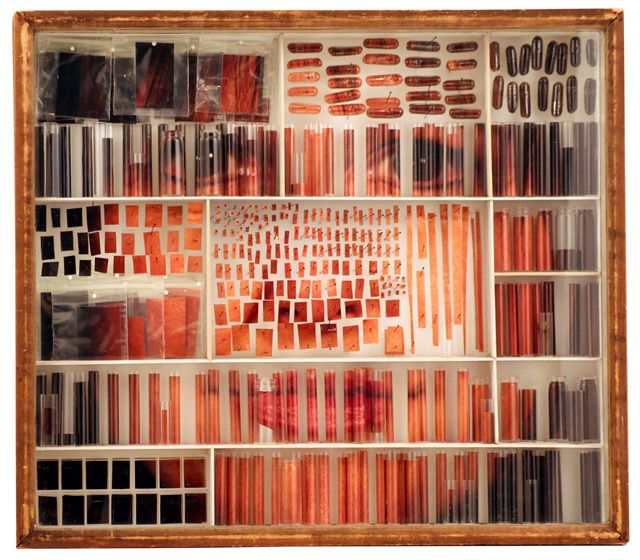 Recovered materials, dissecting, fragmenting, encapsulating.â?¨ Between photography and sculpture, there is Micheal Mapes's work.â?¨ The New Yorker designer creates portraits with unexpected materials: red-wine stains, magnifying glasses, gelatine capsules, resin and insects pins trapped in glass ampoules.â?¨ A painting becomes a laboratory table, and the DNA becomes protagonist.â?¨ The result: a disturbing collage by the seductive impact.