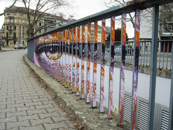 Street artists Zebrating are an incredible duo from Mannheim, Germany. Zebrating loosely translates to, ‘making the zebra’, which describes their artistic style that uses a striping technique (like that of a zebra’s). Railings lend nicely to this style as the vertical rails are already evenly spaced to start. Much of their work can be seen in Mannheim, but they have started to hit other cities in Germany like Berlin and Stuttgart. You just have to find the right angle to notice the picture they wanted to paint.