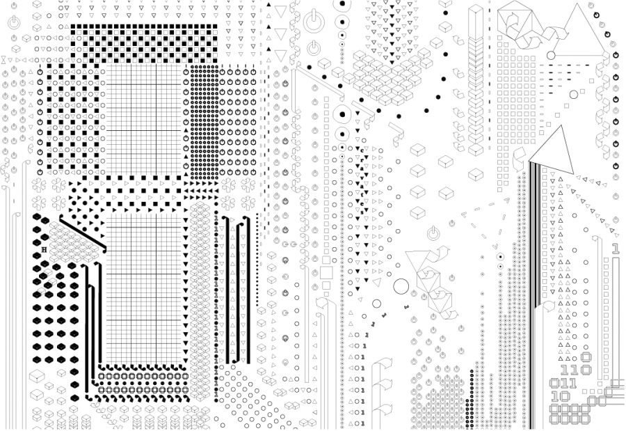 Apparentemente i pattern non sembrano scostarsi dai classici disegni astratti - pois, righe o quadretti - ma ad un occhio attento i pois diventano on/off, le righe cavetti elettrici e i quadretti chiavette USB.