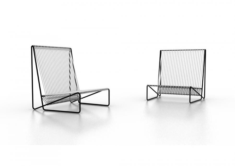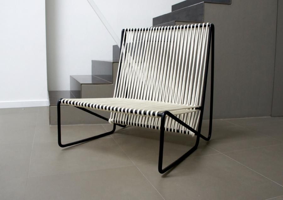 Stefano Esposito's project, RADA, is a chair characterized by the use of one or more cables of technical rope, fitted on a simple rod structure of steel bars, iron or aluminum, folded, welded and painted with epoxy.