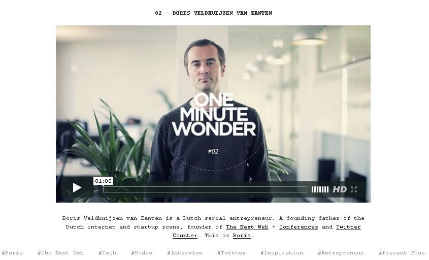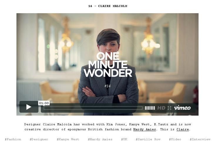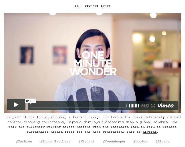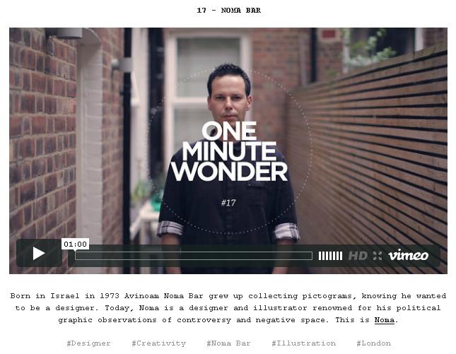Si può? Il blog One Minute Wonder ci prova. E ci riesce anche. Si tratta di una vera e propria rassegna di video-racconti che mettono a nudo le vite degli altri – artisti, designer, fabbricanti di pioggia e di sogni – video che mettono alla portata della nostra mano (e occhi e orecchie) miriadi di personcine di cui, senza questo progetto, avremmo probabilmente continuato a ignorare l’esistenza. Potere di internet, ancora una volta.