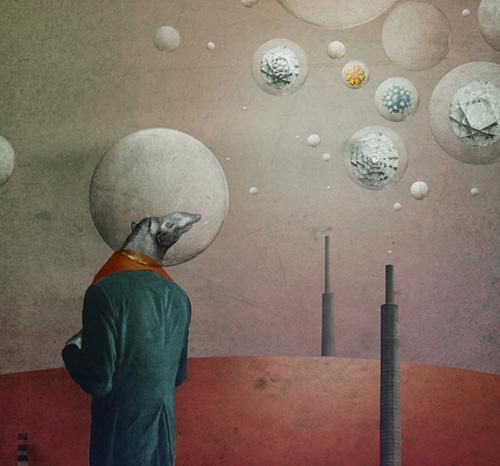 usually i have pencil sketch before i start painting on my mac. then i should spend a lot of time to find pictures, that will be perfectly pass to my idea.when collage is most ready, i print it and then draw my hands again some details. so this scheme can be repeat until i will be satisfied.