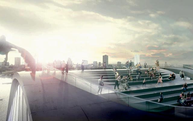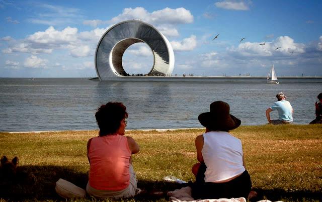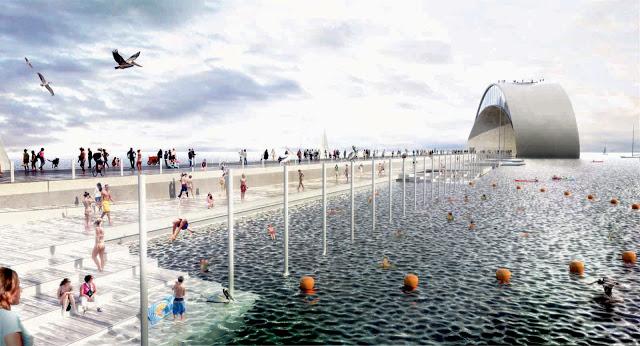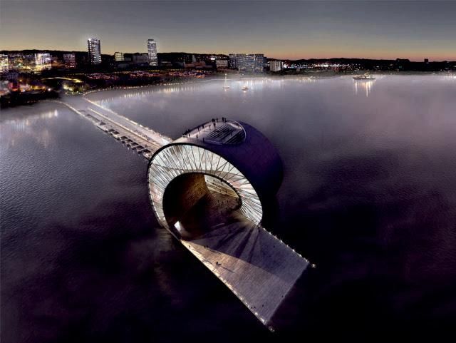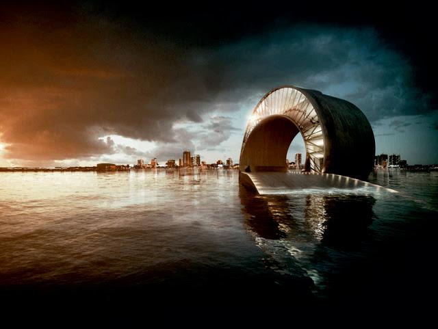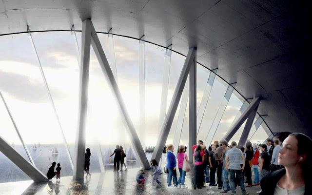 For the competition of the pier of S. Petersburg, from the Tampa Bay, two studies of architecture like Big and Mesh, collaborated for the accomplishment of a singular structure in its type: it is a continuation of the pier in a dais that it is concluded with a structure of a wave-shell, that it is introduced perfectly in the maritime setting, confusing itself with the course of the shapes and of the colors, adapting itself chameleonlike to the context and to the weather situation. The building is a skeleton of steel packed in two shells of cement, and the concept of planning includes a museum, a platform of observation, sober games and green areas, among which salt with special fog type effects, clouds, snow,and spaces for pool, kayak and small boats. THE 34,000 covered square meters of space likely will include restaurants, arcades and shows, perhaps also a track of skating to the inside.