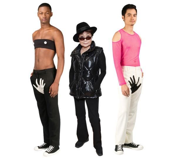 As a performer, singer and activist born in Tokyo in 1933, becomes also a stylist. The companion of John Lennon will turn 80 on February 18 and as a gift for himself and for his fans, will hold a concert in Berlin on February 17, in a place he loves, the Volksbühne, always avant-garde home. "I am in full swing and I have so many programs to accomplish that I will be busy for the entire year," said Yoko, the artist, it seems, is the queen of social networks, especially on twitter has reached more than three million followers. The charismatic Japanese girl is also launched in the fashion world, his first menswear line called "Fashion for men: 1969-2012" and is composed of 52 items that are inspired by a series of sketches that Yoko Ono gave to John Lennon in 1969 as a wedding gift. The line created is nothing more than the transposition fabric of the clothes that would have been good on John Lennon, to his "hot body" as she called it. The collection will be distributed by Opening Ceremony, the garments are for sale on the online store by the U.S.. Among the various proposals and fun are the pants with a fake lion's tail attached to the back and the "romantic" shirt with holes at the nipples ("I've meant to stick into the stem of the flowers," she said to New York Times). The fashion designed by Yoko seems to reflect his vision of the world and she as always, despite his age, is used to look over.