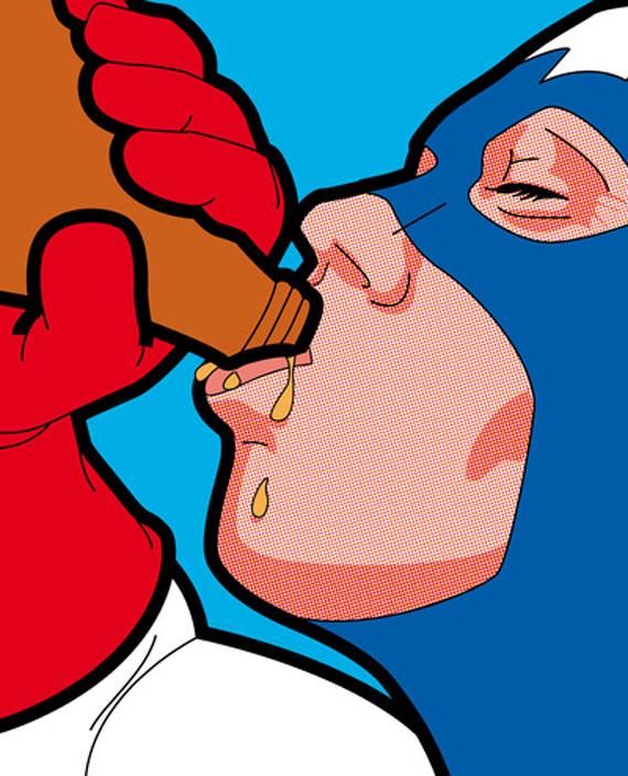Gregoire Guillemin ci sottolinea proprio la banalità della vita quotidiana dei personaggi dei fumetti in "The secret life of Heroes", facendo provocatoriamente venire la pelle d'oca alla Marvel, che credo sia impallidita alla vista di Spiderman che si scaccola vigorosamente e di Catwoman alle prese con preliminari saffici, ma allo stesso tempo rinnova , demistificando, queste figure epocali , magari dando qualcosa di cui parlare ai nostri cari amici nerds.