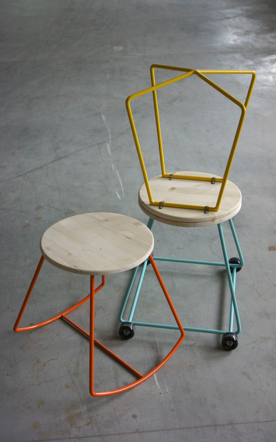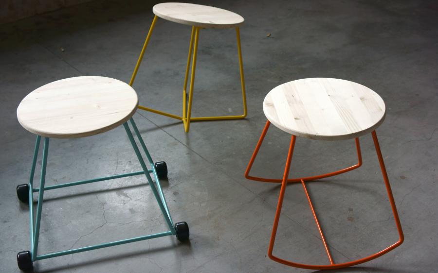 ZE123 Design, a design studio based in Naples, presented at the last Fuorisalone in Milan "I tre moschettieri" project: limited edition stools, Aramis, Athos and Porthos, where the first swings, the second tilts , and the third rolls. Tubular iron, wooden plane, which can be ordered in different wood species to enjoy your seat.