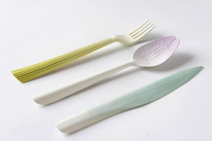 The project began with the decision of Deng using elements inspired by plants as a means of structural and functional cutlery, giving it formal and tactile characteristics through different textures, the real works of art that almost seem more objects to be admired that to use.