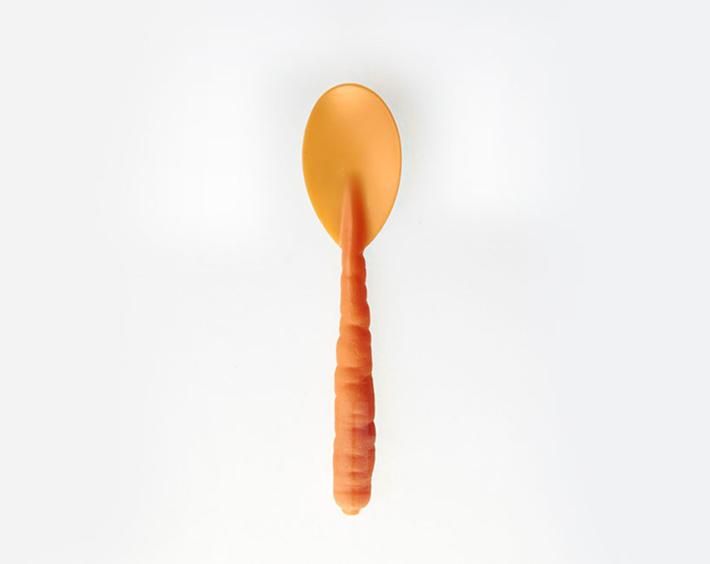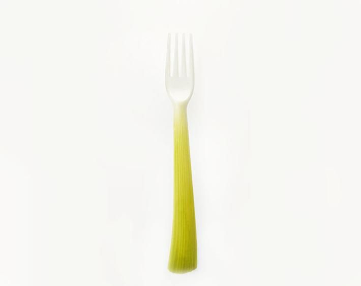 Structure and form in nature already exist autonomously and can be borrowed to serve the functionality of artificial objects. A stalk of celery acts as a handle for the fork, a petal of artichoke the hollow of the spoon, a stem of pineapple is the blade of a knife and a carrot a handle of a spoon, in short, the nature of the table! The bioplastic PLA, used for these products is from renewable sources and makes them completely biodegradable, solving the problem of disposing of the typical disposable products.