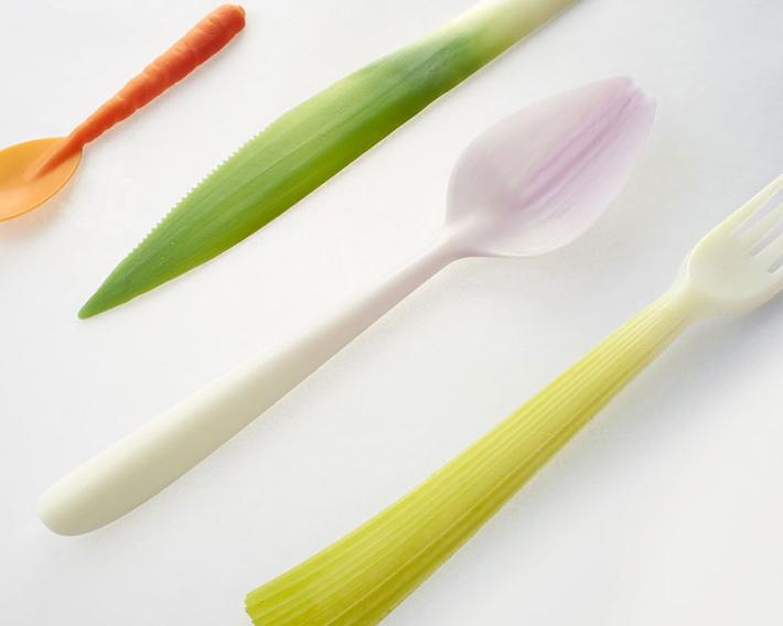 Have you embraced the vegetarian lifestyle? Then, the cutlery that may be right for you has designed the Chinese designer Deng Qiyun, creator of a set of forks, knives, spoons, ladles, cups and bowls disposable PLA bioplastic that draw inspiration from the vegetable world.
