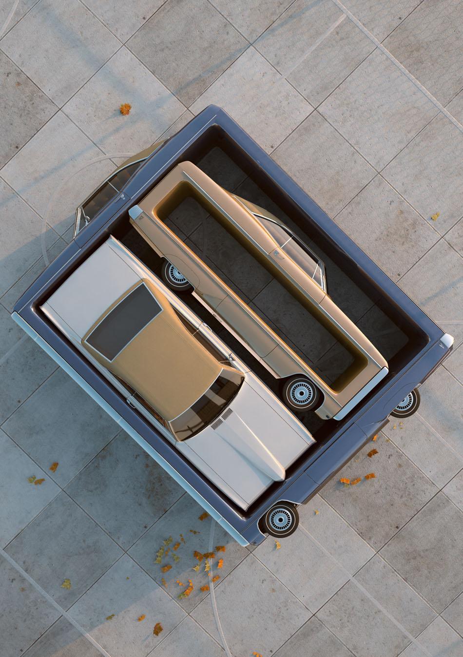 The English designer and illustrator Chris LaBrooy presents his latest artwork entitled "Auto Aerobics." Pictures of classic American cars, stretched, twisted, stretched and interconnected. A show 3D surreal.
