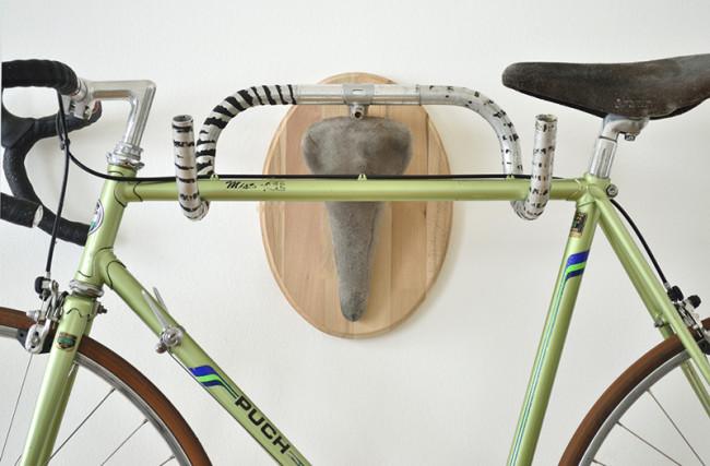 He gathered whatever scrap parts he could, i.e. stems, handlebars, saddles, from scrap dealers and used bike workshops, then assembled them. The finished product is both aesthetic and practical, serving as a bicycle rack while resembling a hunting trophy. And a more endangered species-friendly one at that. Some of the bike trophies are up for sale on his website, or you can make one yourself, as he was generous enough in posting the process of how he did it.