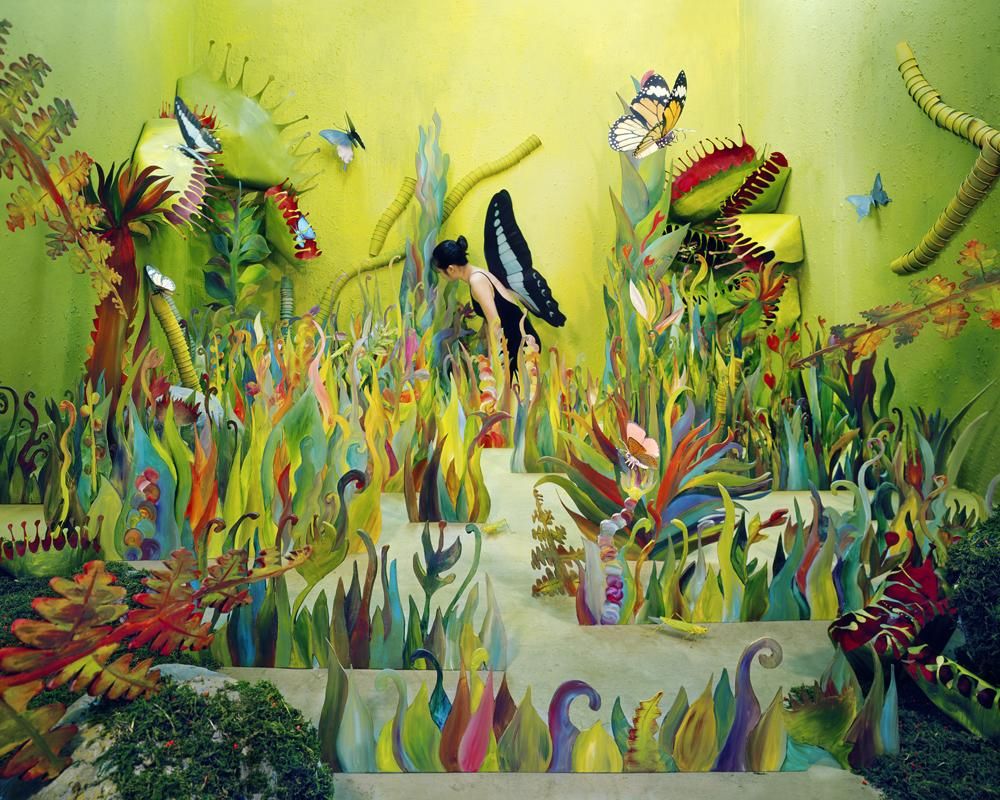 Atmospheres fruit of dreams, the product of Korean fairy tales and memories, these are the themes of fairy-tale scenery and psychedelic signed JeeYoung Lee. A meticulous work that can last several months that occur within his mind then to take life in a study of 3 X 6 meters where the artist photographs without ever looking in the room to better express his soul and his desires. This is Stage of mind.