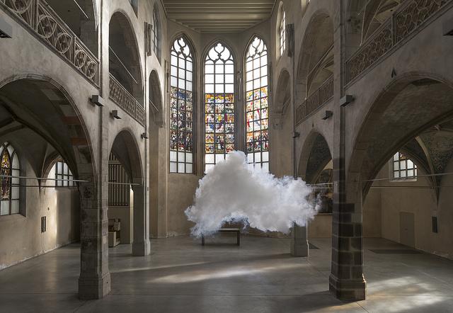 Berndnaut Smilde’s work, at its core, reflects the human impulse to master the forces of nature. Smilde carefully controls the temperature and humidity of a room to produce ephemeral clouds with the help of a fog machine. Though the clouds are only visible for a matter of seconds, they live on in artfully-staged photographs that Smilde exhibits among installation elements. His current show, “Antipode,” is on view at Ronchini Gallery in London through June 14. The clouds in his new photos are just as striking as the interiors they inhabit. The large nimbuses creep through Gothic churches, Rococo chambers and empty factories as if they had lives of their own, playing with the idea of a supernatural presence.