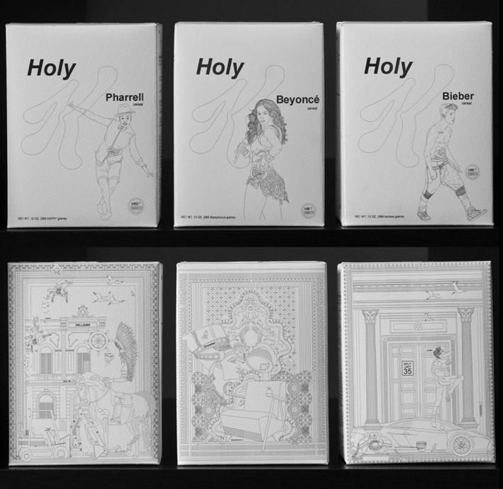 Daniel Arango con Holy K, ha pensato di rinnovare il design dei soliti cartoni di cereali, mettendoci sopra da quella satanassa di Miley Cyrus a madre Teresa di Calcutta!