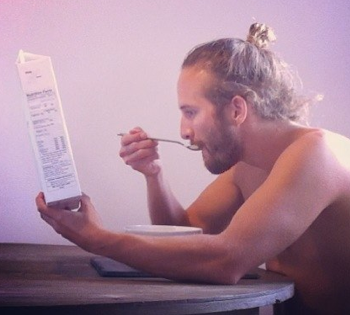 La mattina ti alzi, vai in bagno, poi subito la colazione, e allora ti versi dei cereali nella ciotola e mentre li mastichi forte tanto da annullare l'audio per tutto il tempo del boccone, fissi il cartone e leggi le solite cose: offerte, ingredienti, consigli su come abbinare i cereali, kcal, scadenza, e bla bla bla..