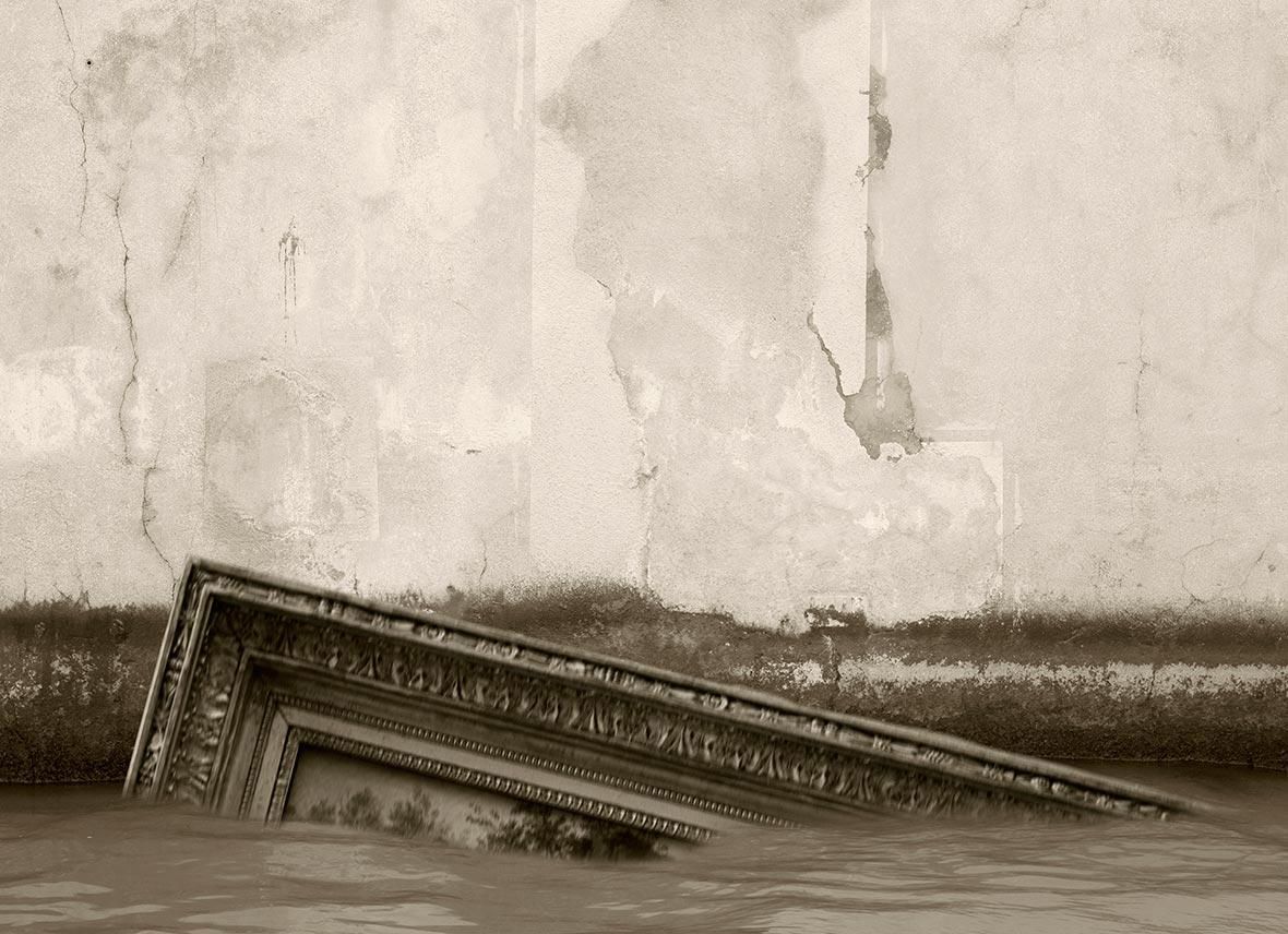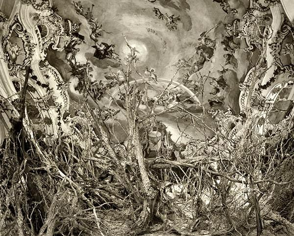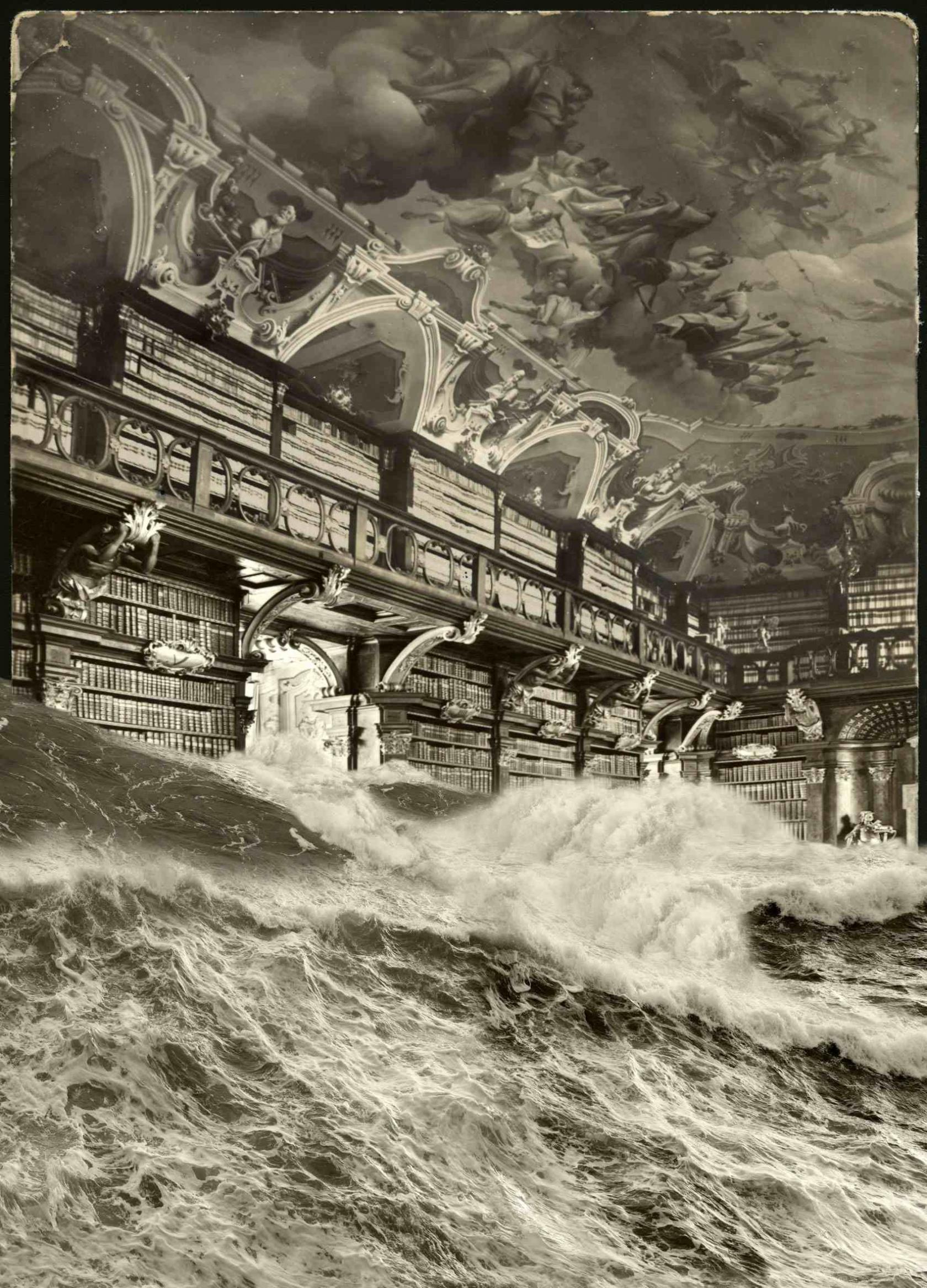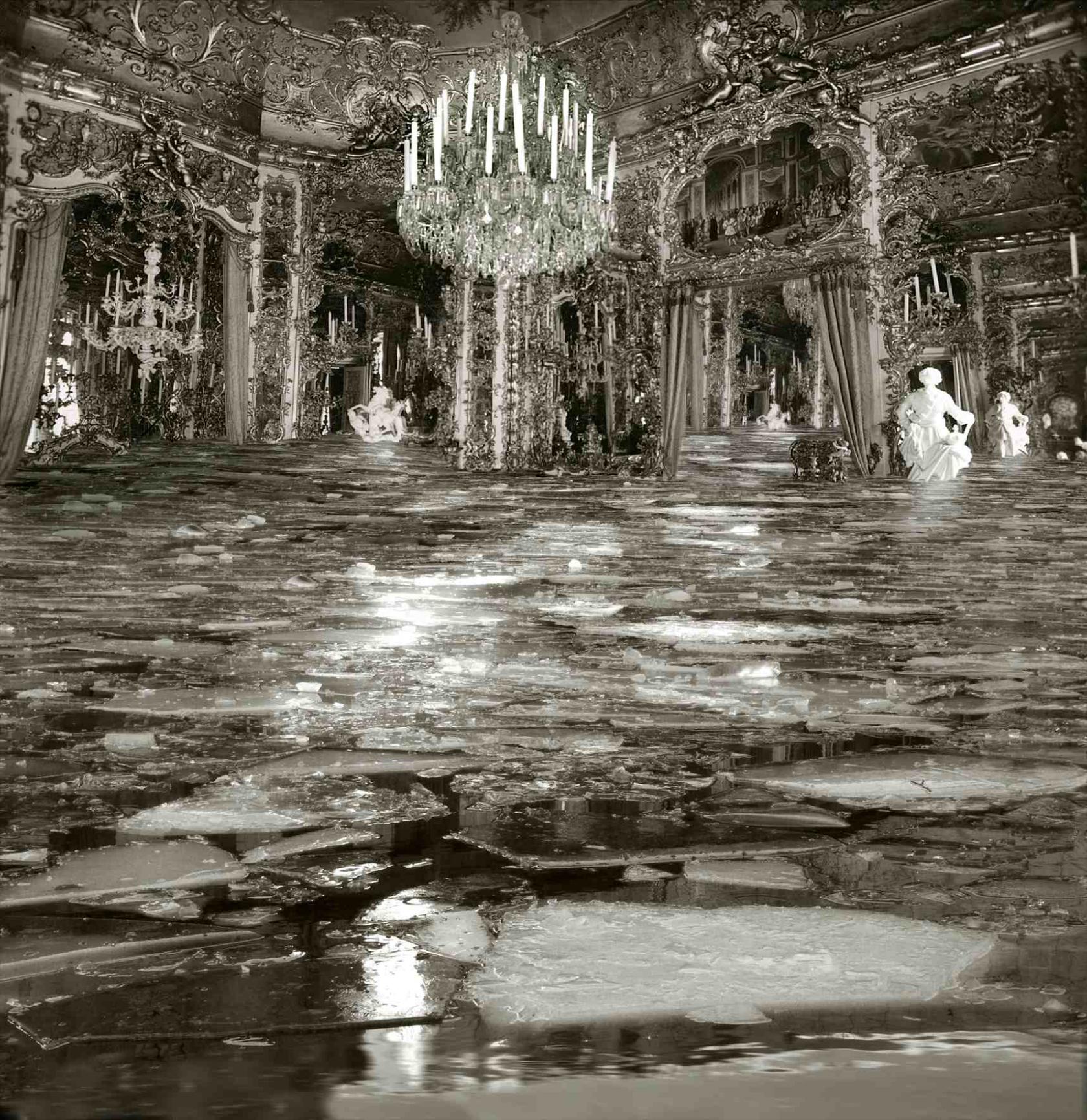 These dramatic images of fallen Baroque interiors are the collage work of Spanish artist Paul Genovés. He stitches together photos of nature with postcards of 17th and 18th century places that he’s collected from street markets. The result is both dreamy and disturbing with a strong impact- and not too far from reality. Primarily, his subject is bodies of water, like ice floating through a Venetian palace or waves crashing down the stairs of an old theater. Recent works also show forests taking root in palace halls. In less than a century, monumental cities like Venice will be underwater or be lost to decay. It leads us to question the relationship between man and nature, and what the future holds.