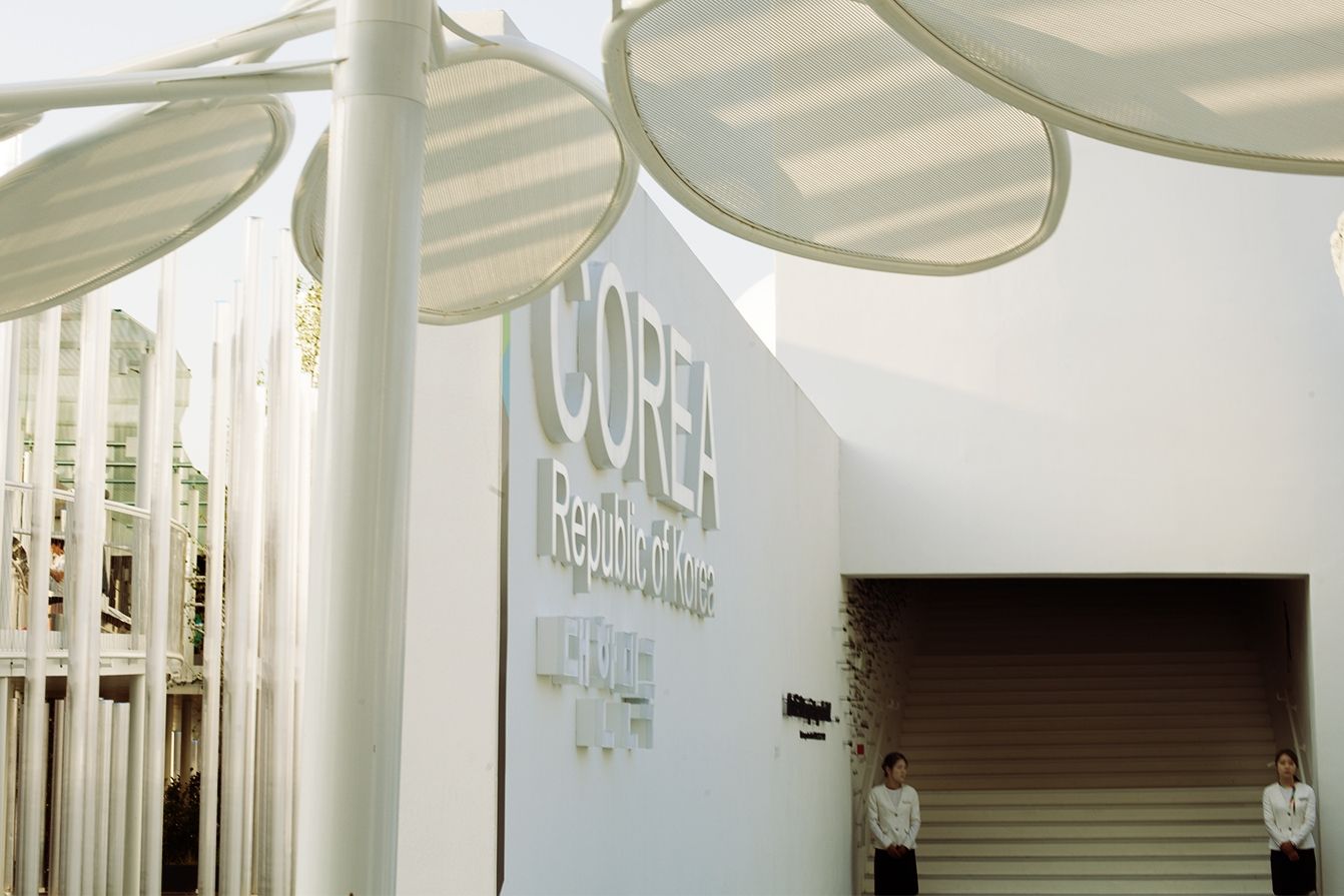 The structure of the Pavilion is inspired by the "Moon Jar", a traditional Korean ceramic inside which are still preserved foods. The Korean Pavilion summarizes perfectly the concept of Korean natural beauty, with its curves and its oval structure - but at the same time also embraces the western culture, drawing inspiration from the urban planning of ancient Rome. A symbolic building to enclose a symbolic culture.