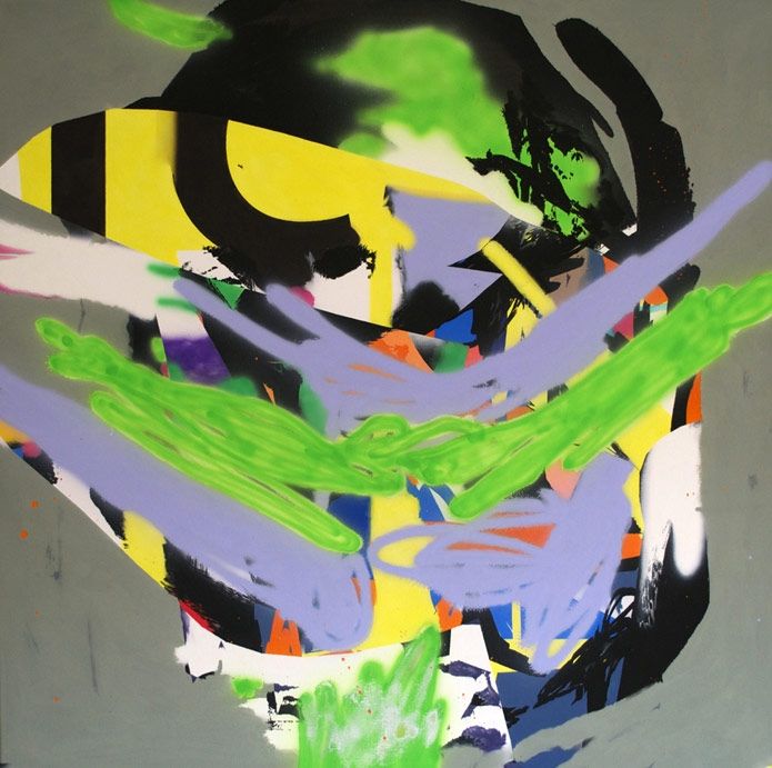 It is divided between randomness and dialogue between colours and shapes, a chaotic balance that involves the eye nicely.